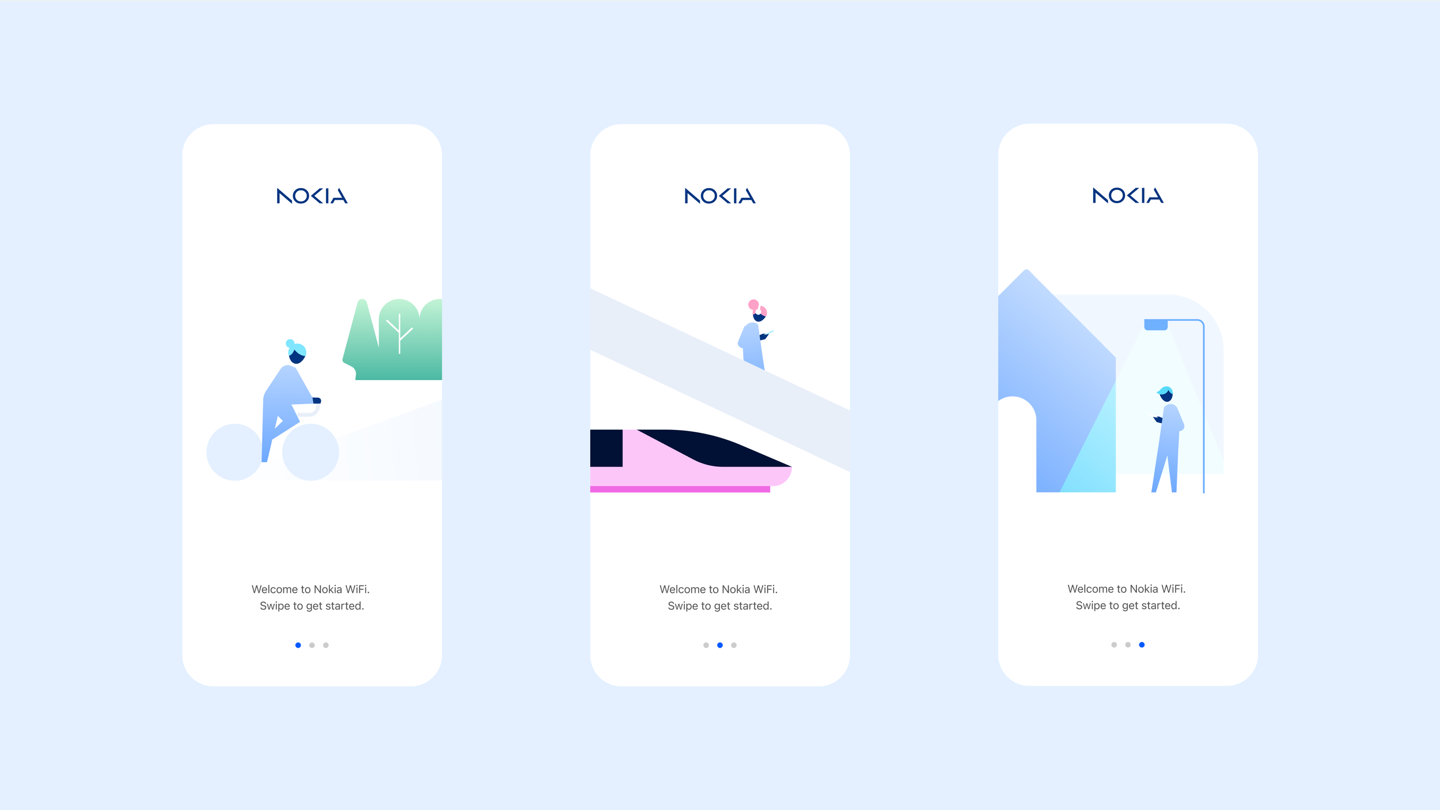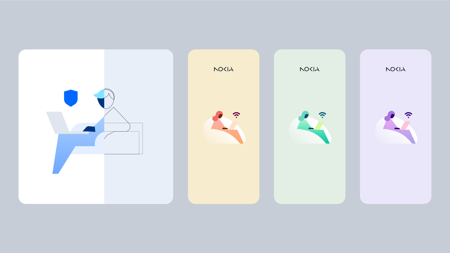 Nokia Pure 插图设计简洁、灵活,通过暗示、负面空间和抽象几何形式营造出人性化的感觉。独特的插图风格有助于讲述不同诺基亚数字体验中的故事。