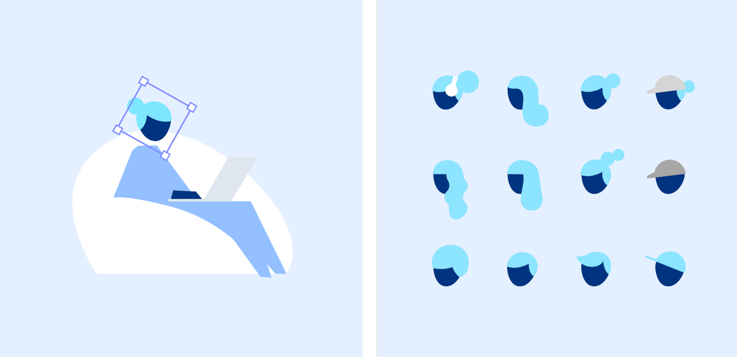 使用可互换的元素和抽象的性别和肤色有助于保持插图的包容性,使其能够与广大观众产生共鸣,同时仍然有效地为诺基亚设计师提供一个灵活、实用、具有个性的工具包。
