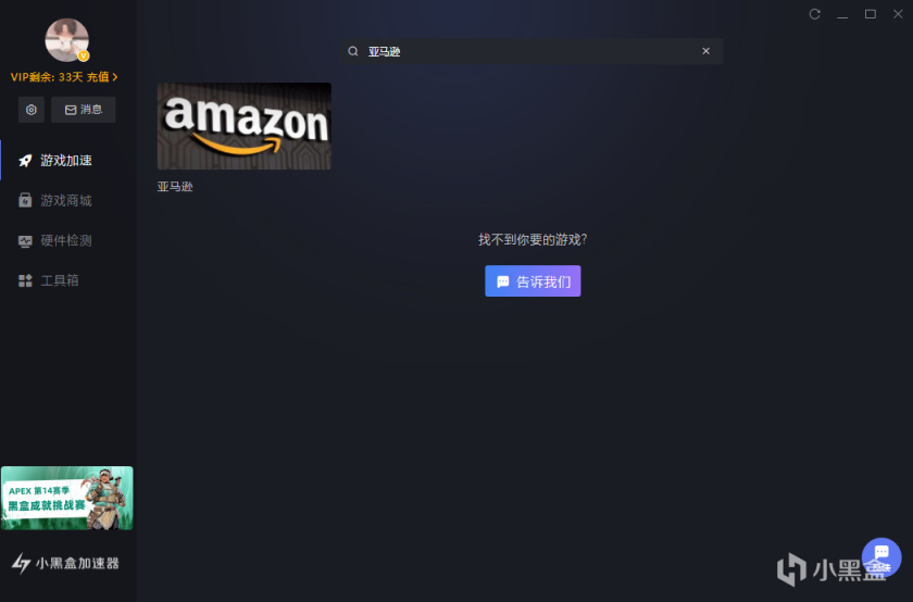 小黑盒加速器支持加速亚马逊,有日本/北美节点供选择。小黑盒三天会员兑换码:xiaobai666