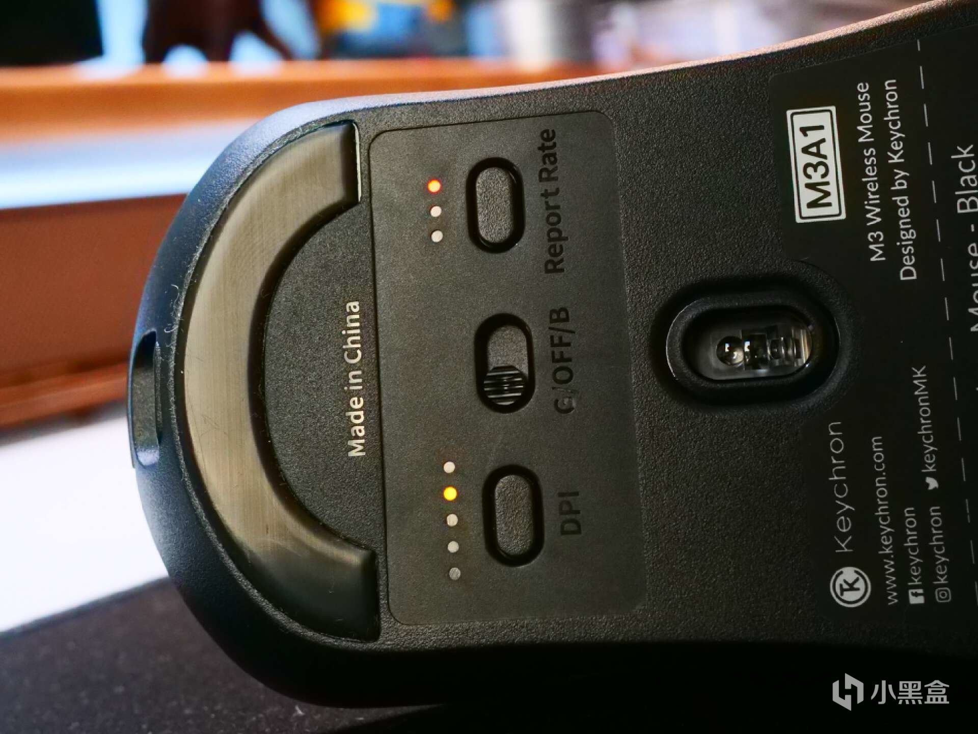连接方面,Keychron M3采用三模设计,支持有线、蓝牙、2.4G三种连接方式,可以通过鼠标底部的切换按键进行模式切换。