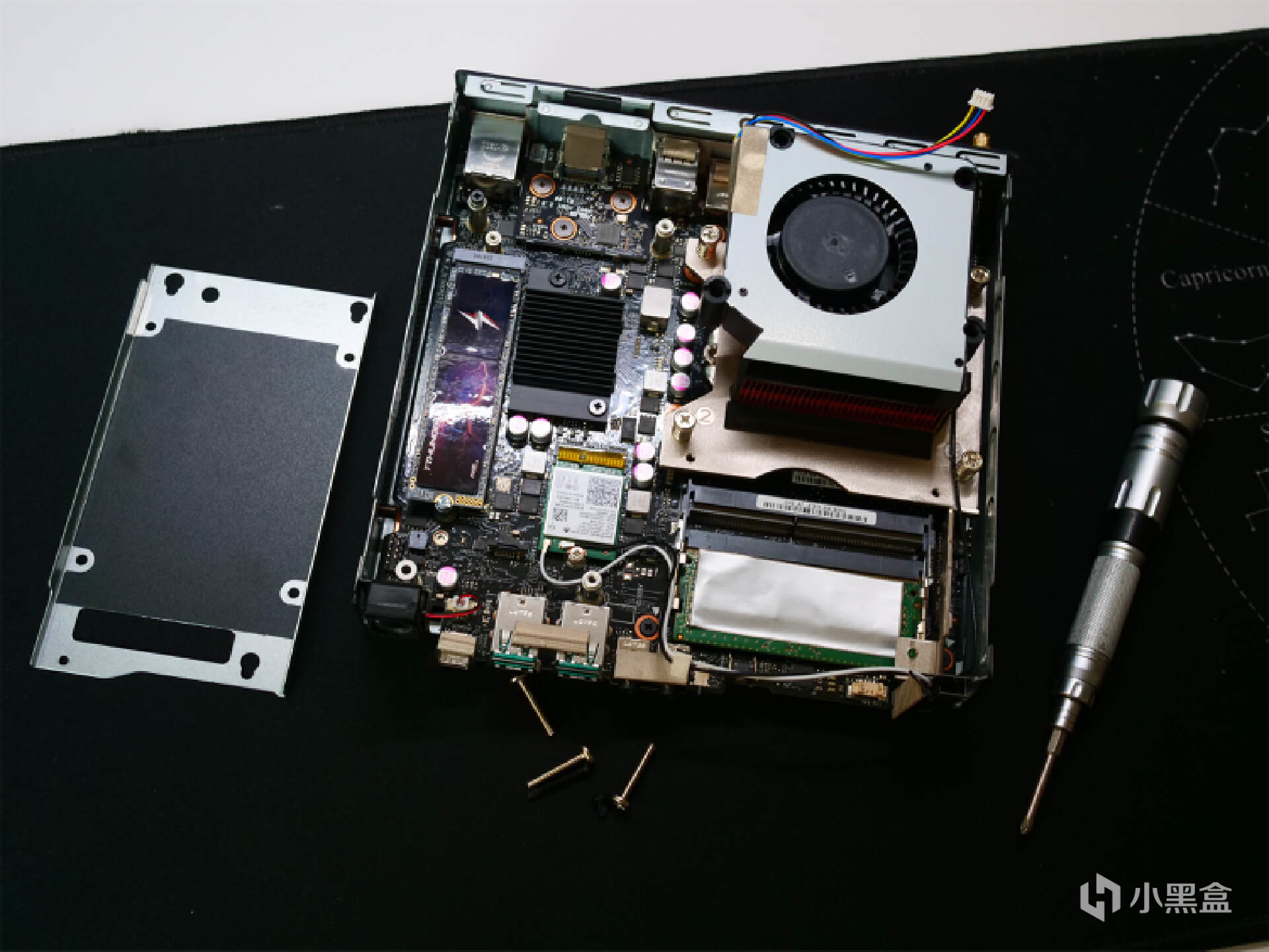 虽然体积小巧,但是PB62的扩展性却一点不差,主板配置两条DDR4笔记本内存,最大支持64G内存。主板正反两个M.2固态接口,外加一个2.5寸SATA盘位,三个硬盘位足以满足硬盘扩展需求。