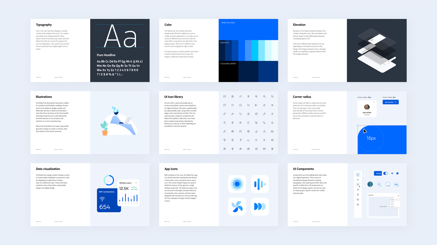 據介紹,Nokia Pure 是一個靈活的、經得起未來考驗的設計系統,由諾基亞創建。該系統由基本元素、組件、模板和指南組成,所有這些都有助於爲諾基亞數字產品打造一種新鮮、乾淨、簡約的新風格,使其與新品牌的外觀和感覺相一致。
