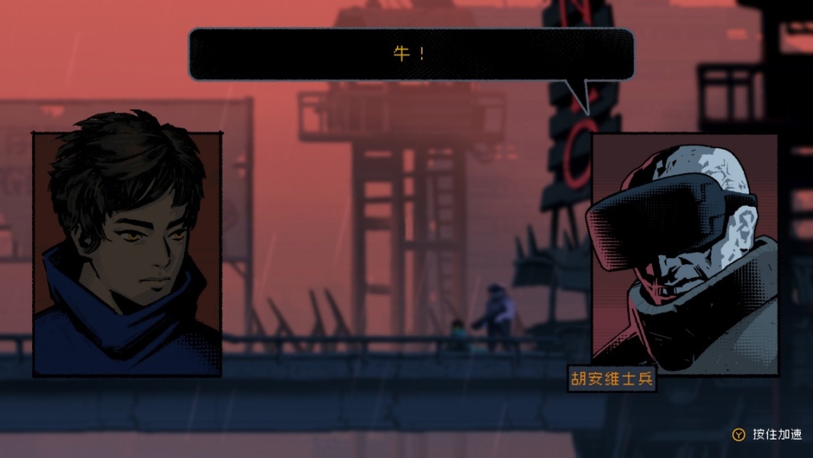 玩家面对的NPC们可以说担起了整个游戏的欢乐担子。在和某些NPC对话时,他们在回答你的时候会伴随方言语音,有些NPC则是打破了第四面墙,不仅会告诉你开发者的一些小心思,甚至会问你玩的是正版还是盗版。再跑图的过程中交流最多的是淬八和莱莱子,淬八作为特工联络员为了找回自己的特工和哈克合作,除了爱和哈克吵架其他还算勉强正常,而作为“菜币”机客服的莱莱子,就显得额外古灵精怪:在玩家多次死亡后会打电话推销自家的“菜币”产品,贴心的安慰(嘲讽)、自来熟的口语,让人很难忍住不去购买产品,而如果多次拒绝莱莱子的推销,可怜的莱莱子就只能回老家嫁人了。
