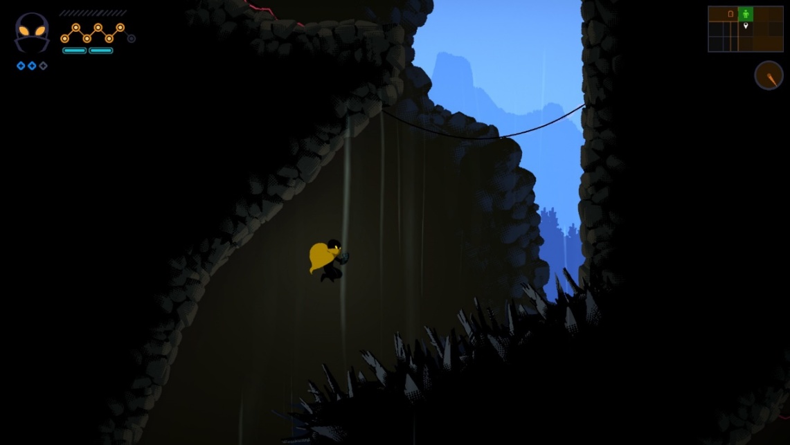 《勇敢的哈克》定位是一款类银河战士恶魔城的横版卷轴游戏,游戏主要以探索为主(当然boss战斗设计的也十分优秀),和所有银河战士游戏一样,主角的初始能力并不能探索到地图上的每个地方,而是通过收集散落在地图各个角落的黑色或白色立方体能力碎片来获得新的能力,再凭借新能力回溯和探索地图上的各个角落。