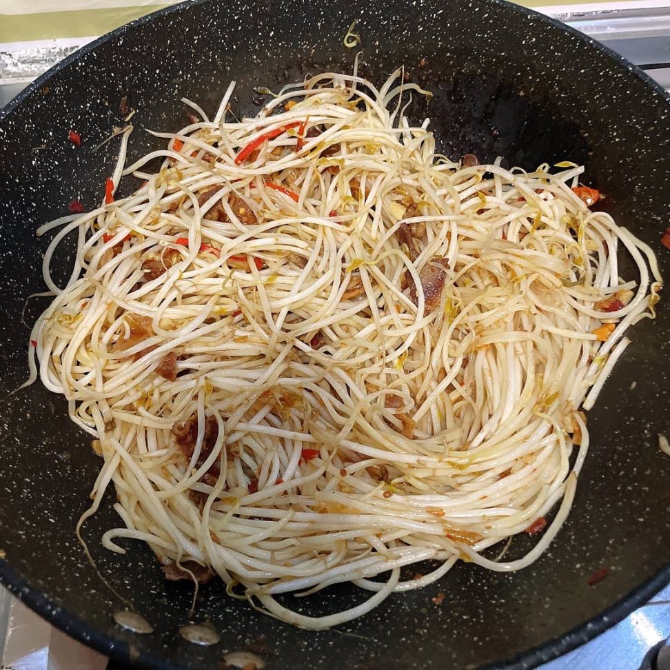 虽然素豆芽很好吃但是用五花肉炒豆芽更香!