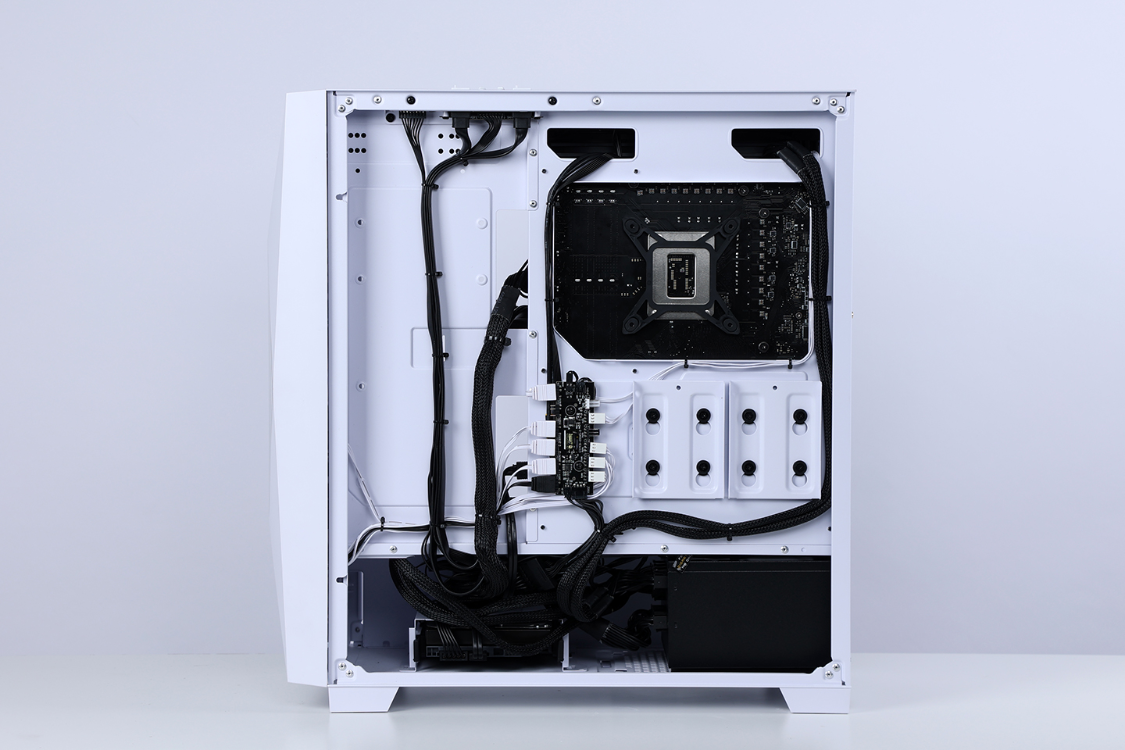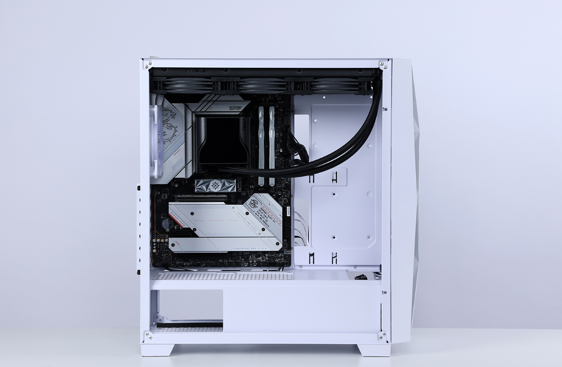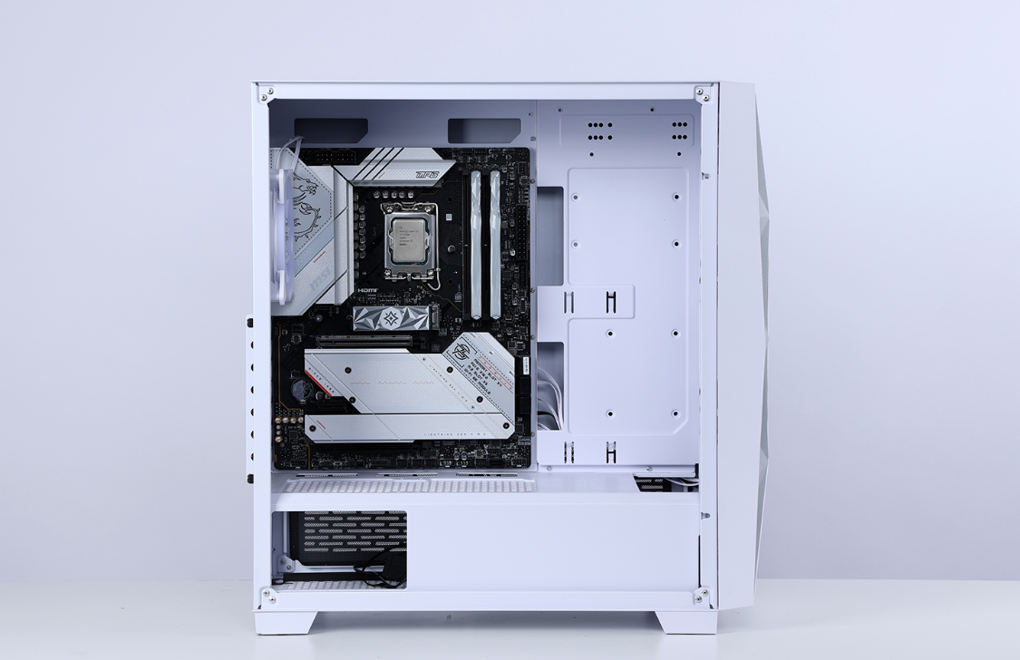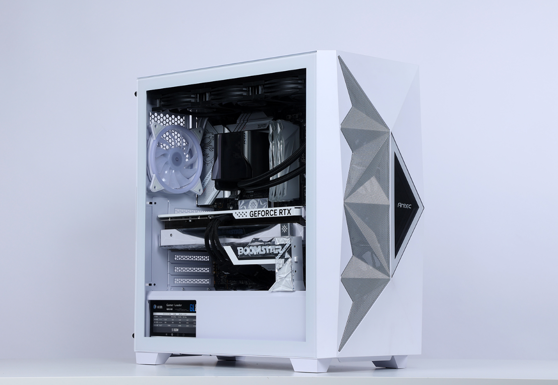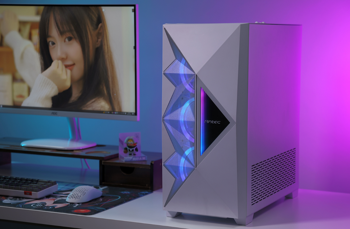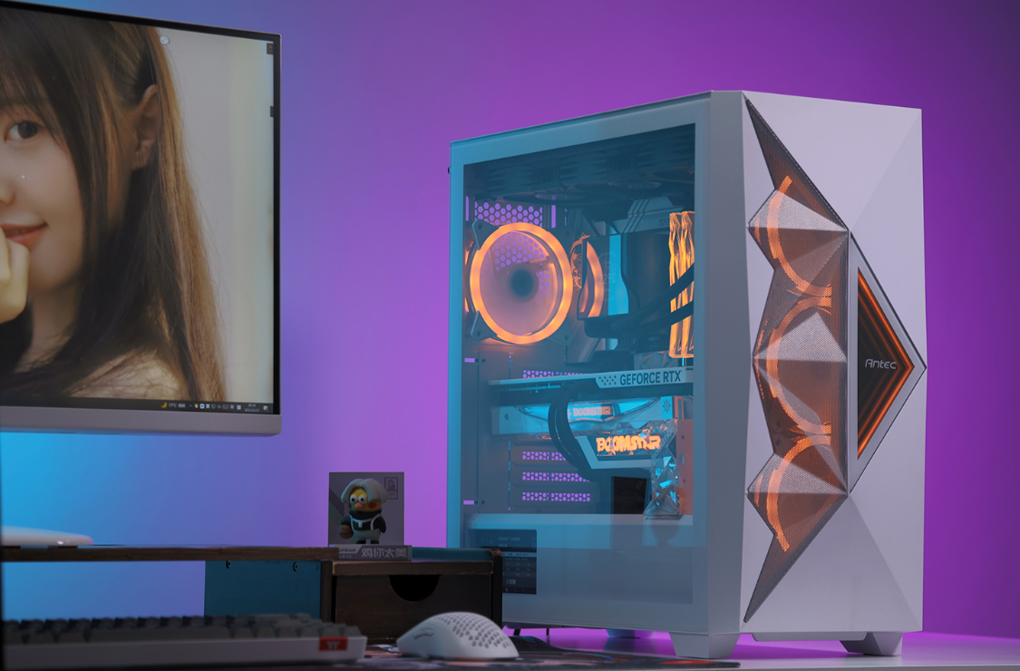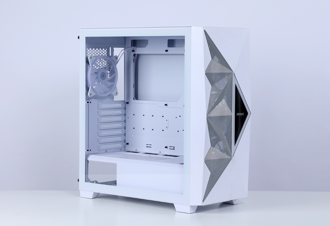 機箱咱用到的是安鈦克DF800 Flux ARGB星曜者機箱,還是顏控最喜歡的白色。極具辨識度的菱形結構前臉,也非常吸睛。機箱搭載安鈦克專屬的FLUX平臺,採用獨創的特殊風流架構系統,對於高功耗的RTX40系顯卡和13代酷睿平臺來講,非常友好。高透光的鋼化玻璃側板,可以清楚的看到機箱內部硬件的運行狀態,不管你是無燈愛好者還是ARGB光污染愛好者,都能Get到你的點。