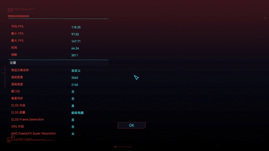 《賽博朋克2077》,畫質超級,光追設爲變態檔位,4K分辨率下,關閉DLSS時,遊戲的平均幀率爲21.06FPS左右。開啓超級性能模式下的DLSS 2.0後,遊戲平均幀率爲91.71FPS左右。繼續開啓DLSS 3.0後,遊戲平均幀率爲118.35FPS左右;大力水手,名不虛傳