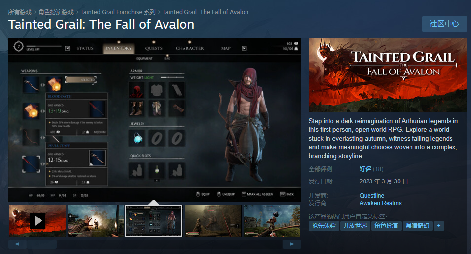 由Awaken Realms发行,改编自著名桌游《污痕圣杯》的电子游戏《Tainted Grail: The Fall of Avalon》已正式登陆Steam开放抢先体验,售价108元。