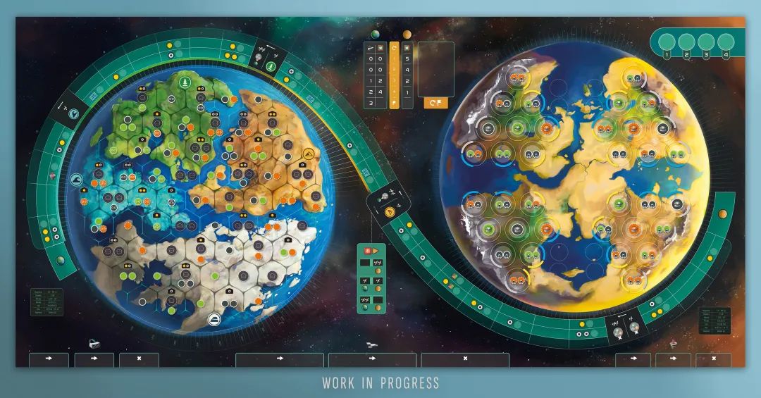 游戏的独特之处是玩家需要管理两个星球的资源——“旧的”和“新的”,而且这些资源无法混合。随着游戏进行,旧星球上的资源收入将越来越低,而游戏后期,“新”星球的资源产量将迅速增加。