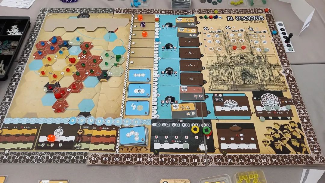 《12 Monks》,《Lisbon Tram 28》设计师的新作,一款以修建阿尔科巴萨修道院为主题的骰放游戏,将由Spielworxx发行。