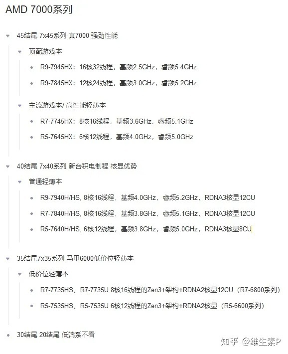 紅方陣營的 AMD 今年 7000 系列的移動端處理器可謂是眼花繚亂,小白估計是看不明白的,所以選購相關筆記本電腦產品的時候,可能會一不小心買錯款式。