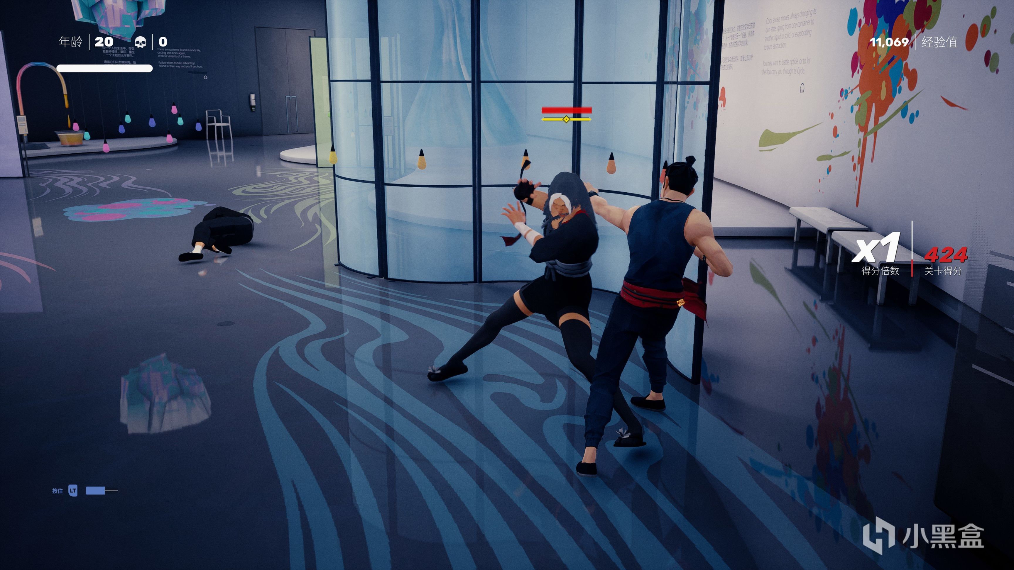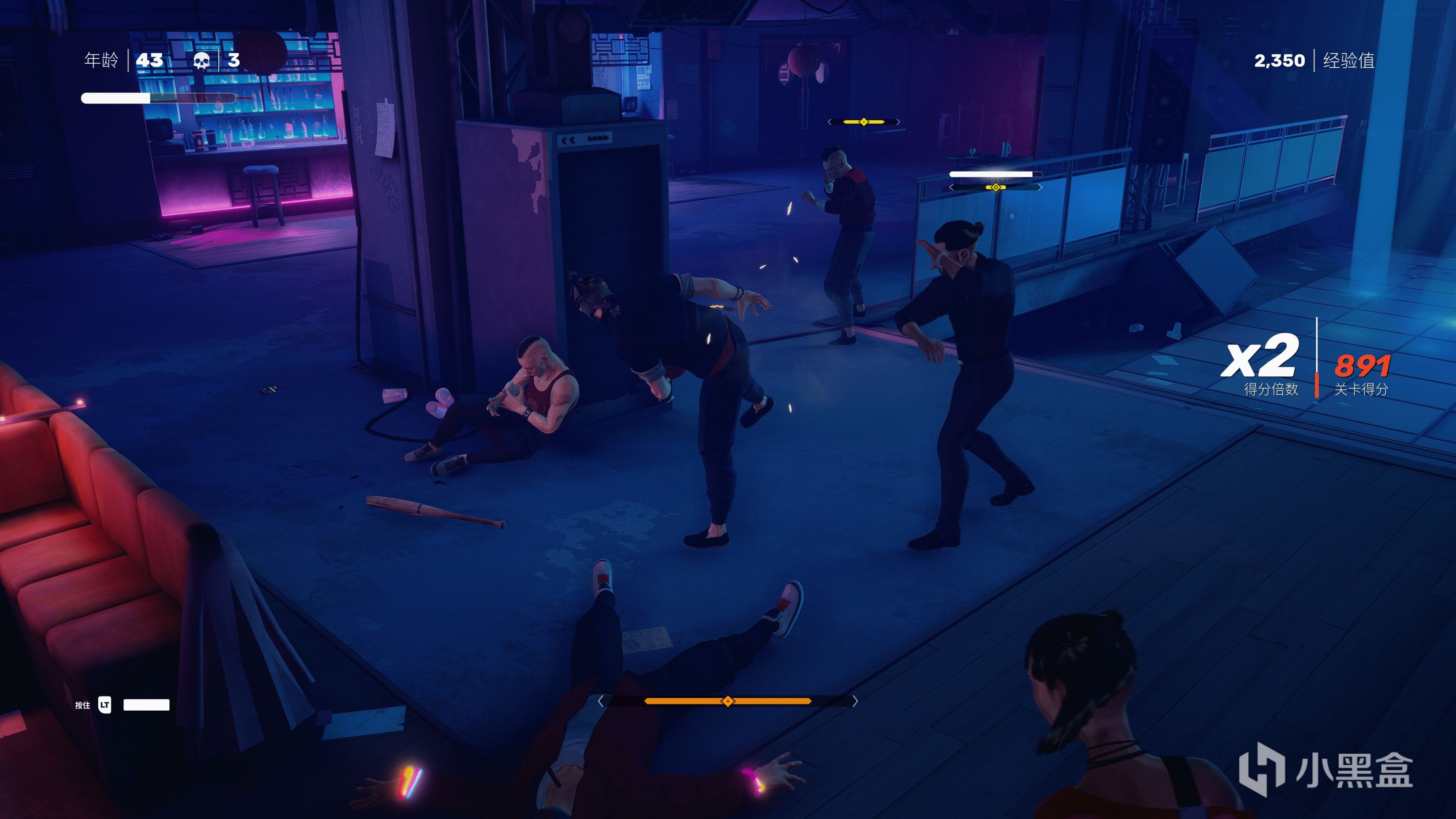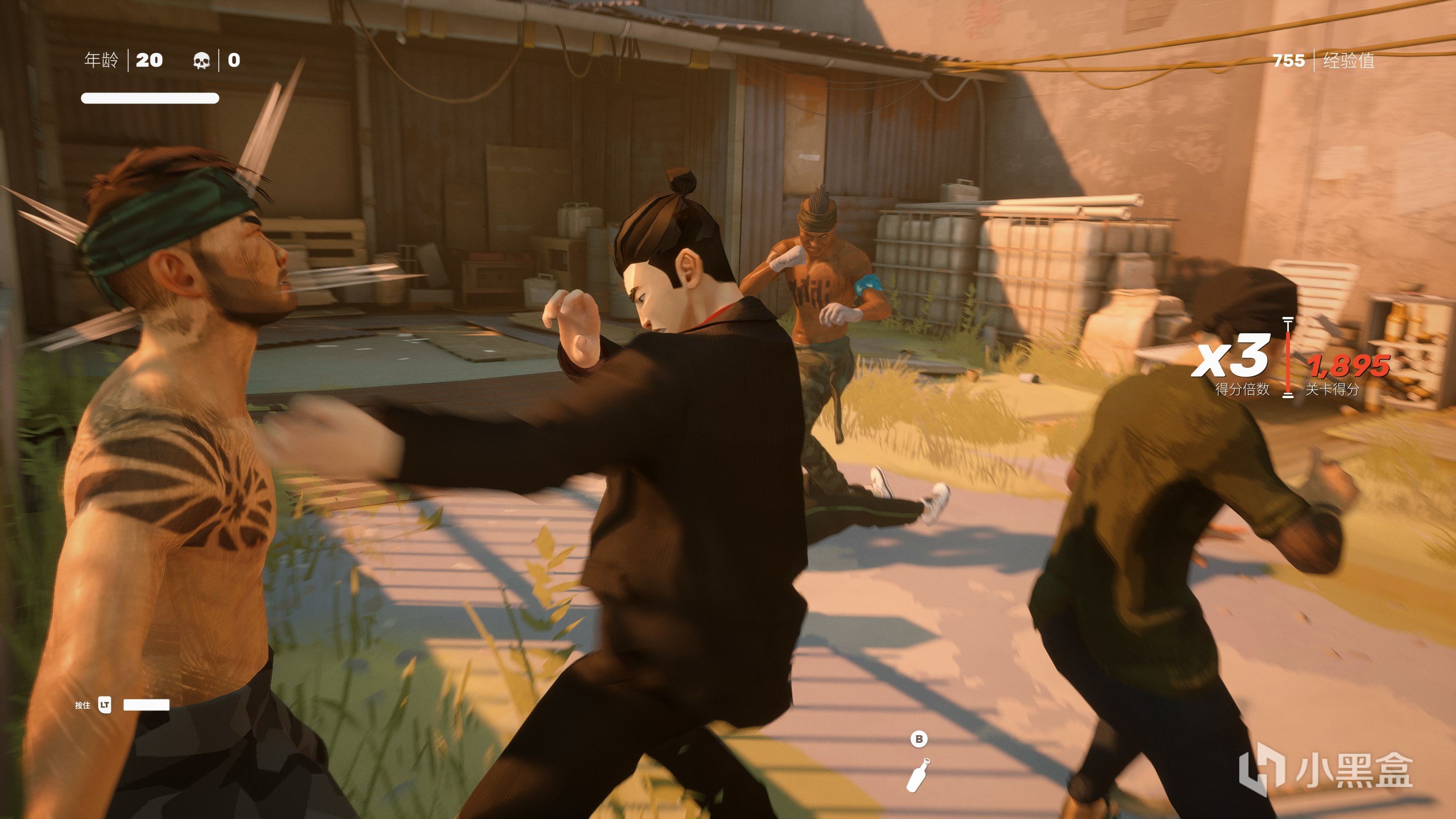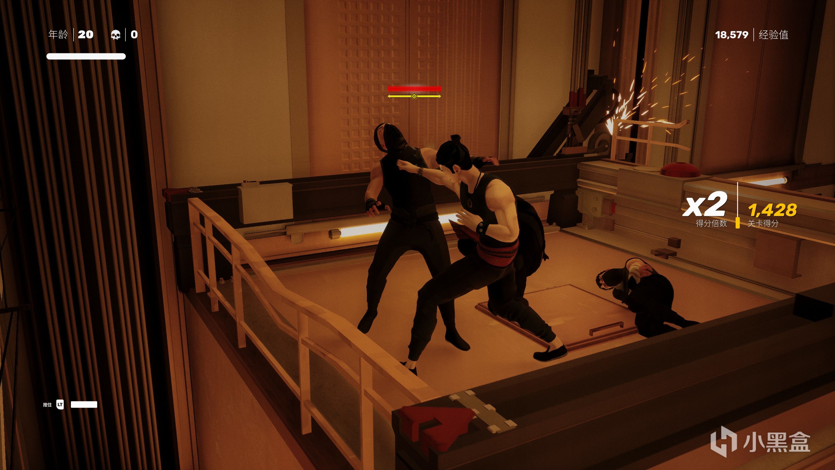 戰鬥中我們也可以使用滑鏟和掃堂腿來擊倒敵人再進行追擊,學習了一些環境專精我們可以與環境的物體進行交互,比如地上的凳子和酒瓶可以快速踢飛到敵人身上,擊中後敵人的架勢條會增加,如果觸發環境特定攻擊動作,那麼敵人會被扔出窗外,也可以把敵人的腦袋拍在桌面上等,這些細節讓我們在遊玩時也增加了爽快感。