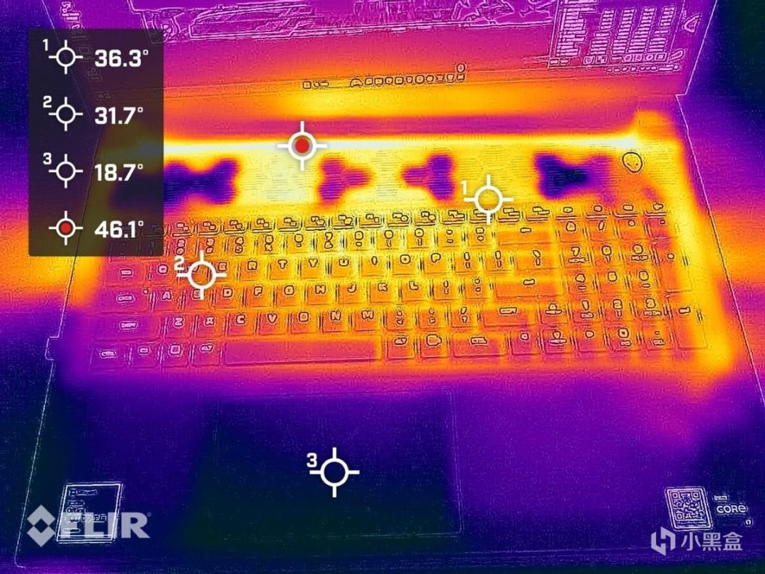 並且在全速運行的狀態下,我們檢測到噪音大概在58.4dBA左右,在諸多遊戲性能筆記本中表現屬於較爲安靜的級別。