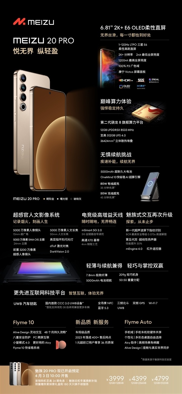 在魅族史上最盛大的发布会之后,魅族20、魅族20 PRO将于今天上午十点正式迎来首销,起售价2999元。
