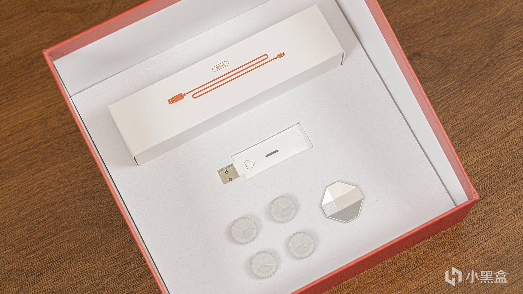 它的下面是兩對替換搖桿、一個可替換十字鍵、一個2.4G適配器及一根數據線。