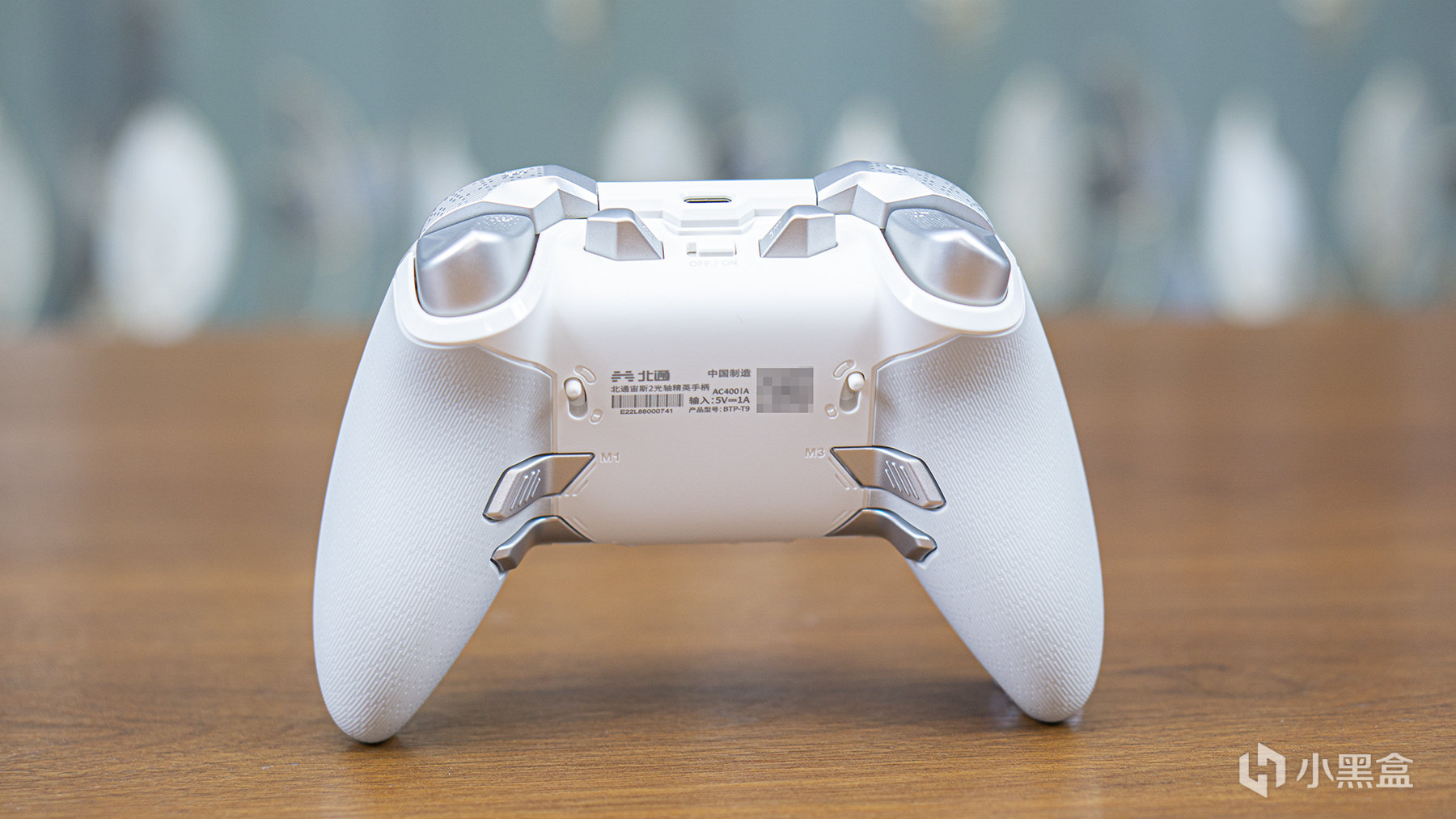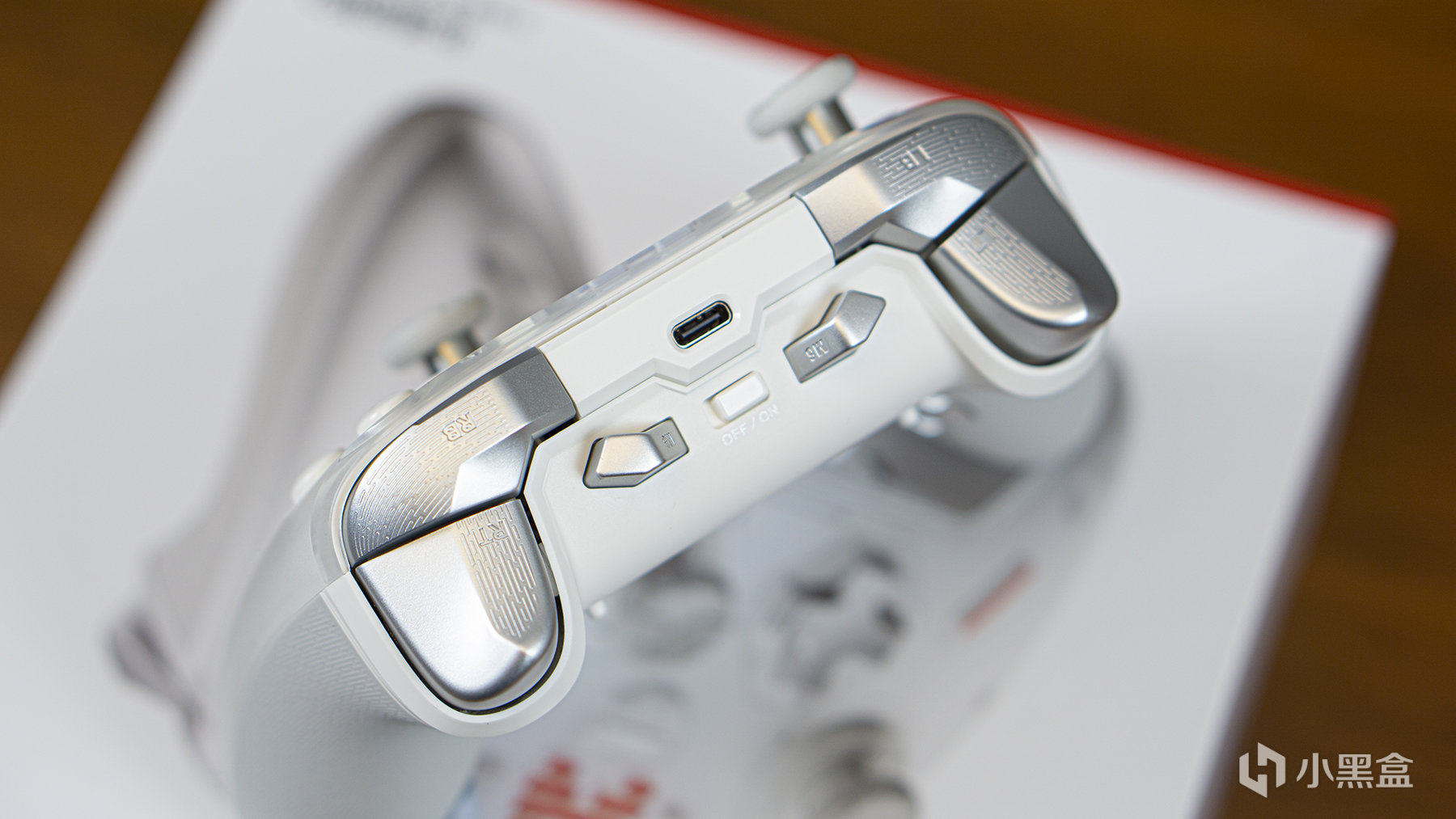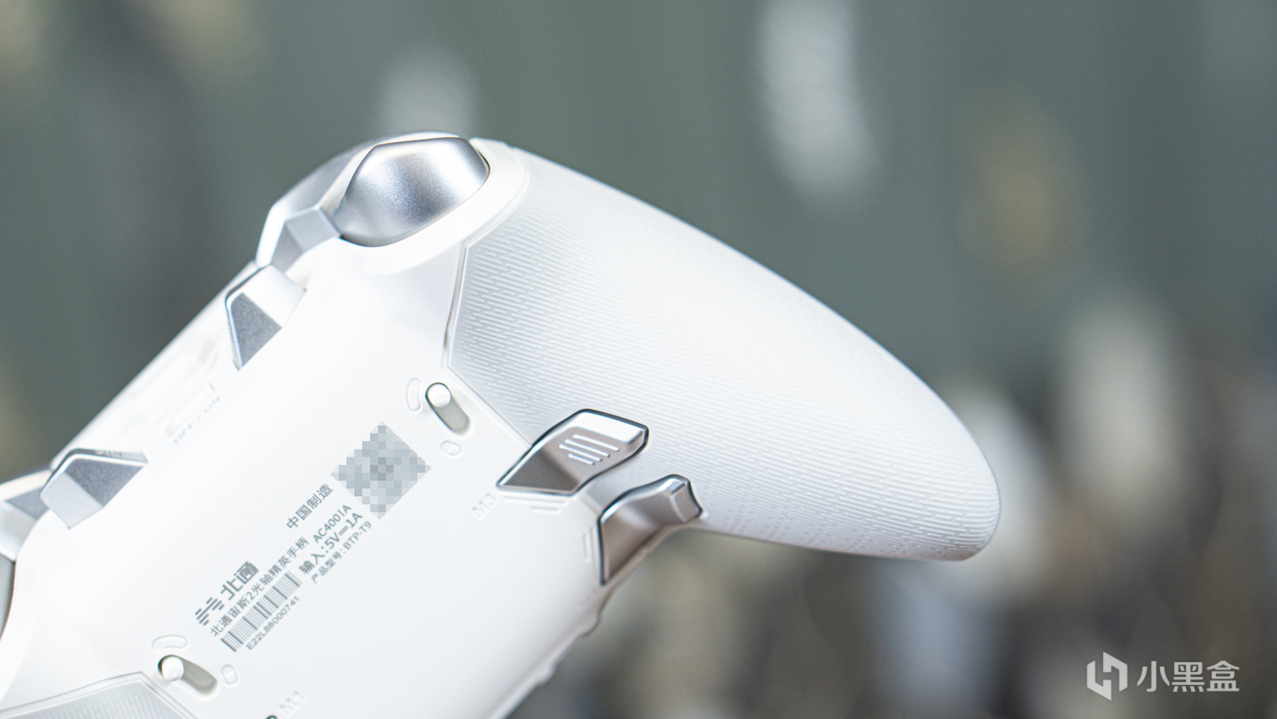 手柄的頂部集中了兩對肩鍵、M5、M6功能鍵、電源開關及一個TYPE-C的數據接口。