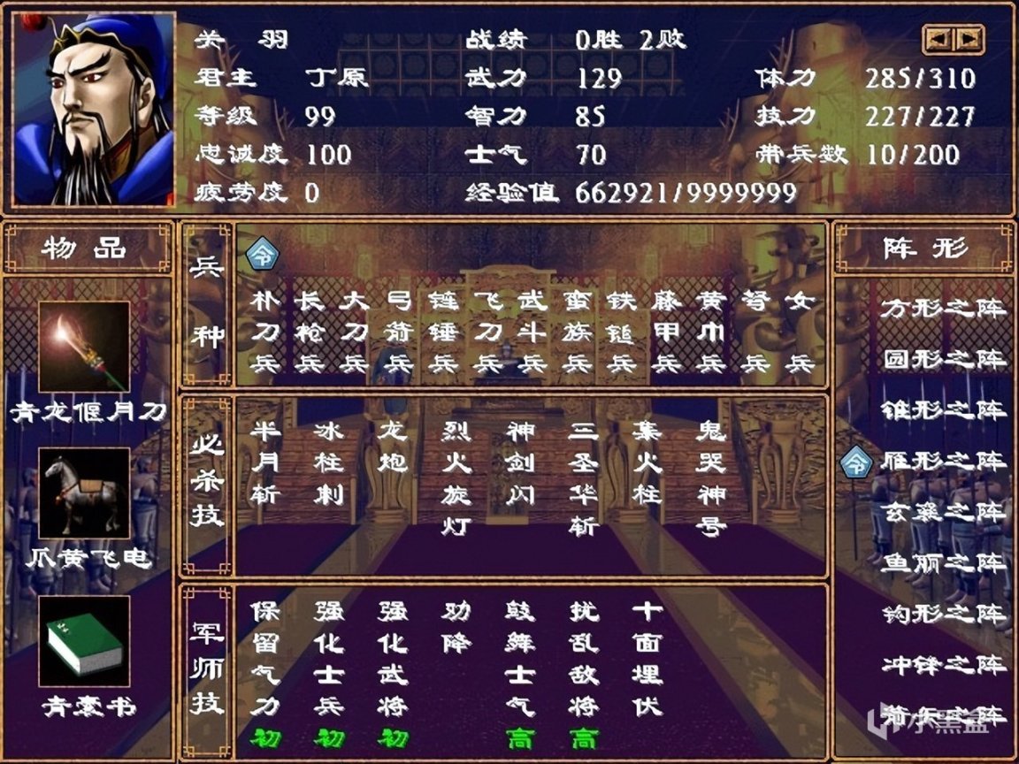 回到正題,羣英2的人物基本屬性僅有武力智力兩項,看似塑造空間很小,但所有人物都有差異化的技能組合。數值相近的兩人,在某些三國遊戲裏面可能用途比較雷同,但在羣英2就有較大差別,比如武力99智力85的關羽和武力98智力88的趙雲,雖然數值極爲接近但技能卻有極大不同,這就導致了兩人的用法和定位變得很不一樣。