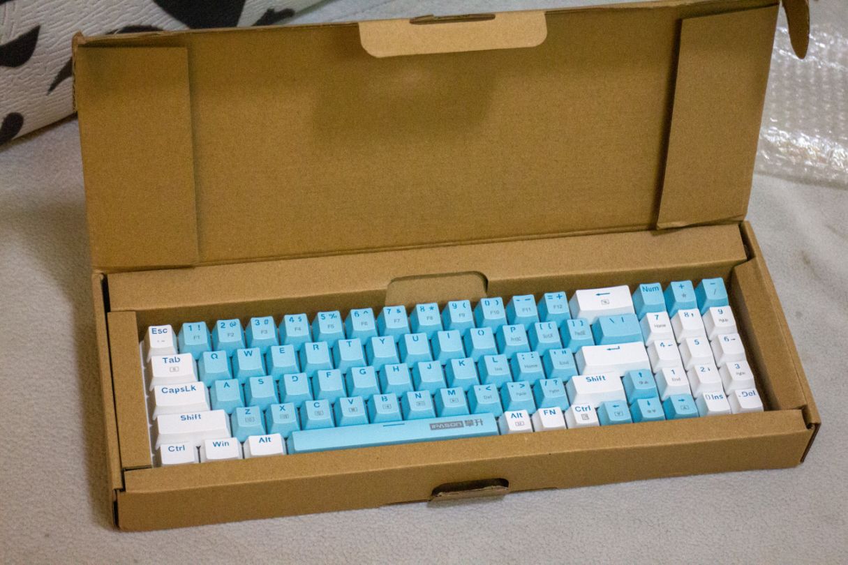 打開之後 可以看到鍵盤的本體,馬卡龍的配色還是相當好看的,我一個男生都很喜歡藍白配色的東西,根本沒有抵抗力。