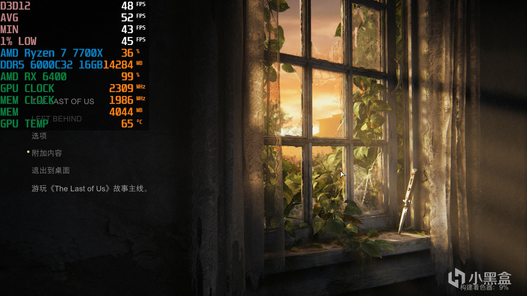 這很有可能也是導致一些玩家反饋優化不好的問題所在(CPU都滿載了能好嗎?),回想一下官方最低配置推薦的CPU是Ryzen 5 1500X和Core i7-7700K,它們是正兒八經的四核八線程規格,理論上只要遊戲線程利用足夠多,表現會比物理六核心應付《最後的生還者1》重製版更好。