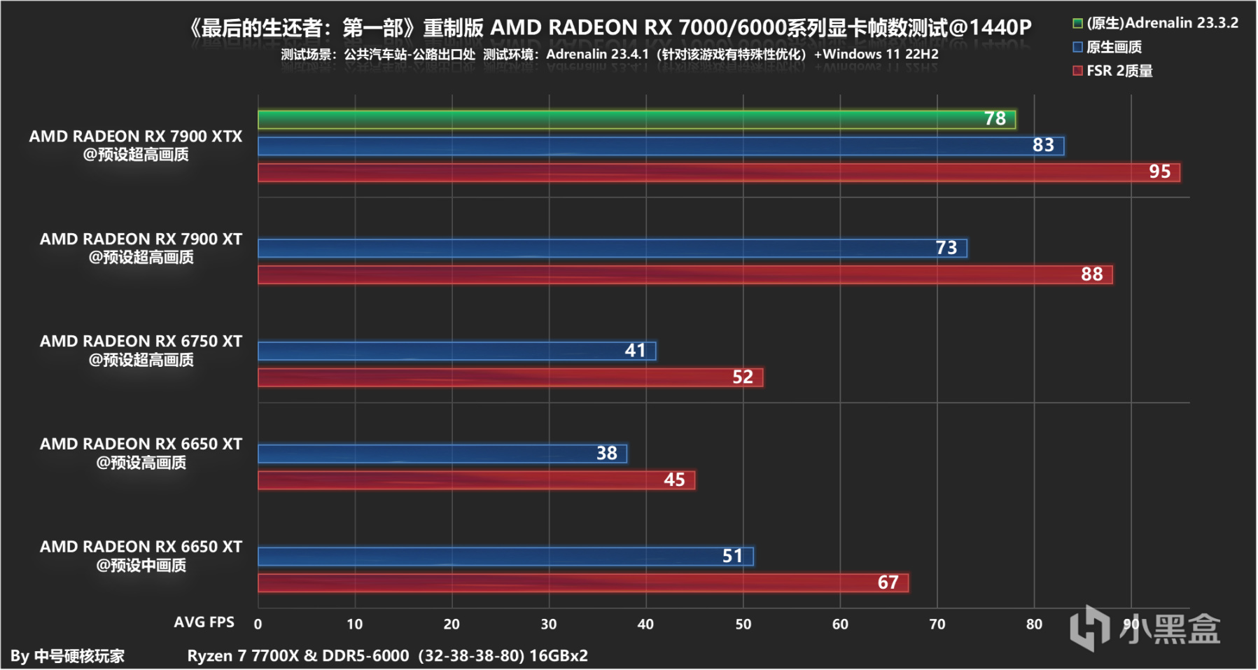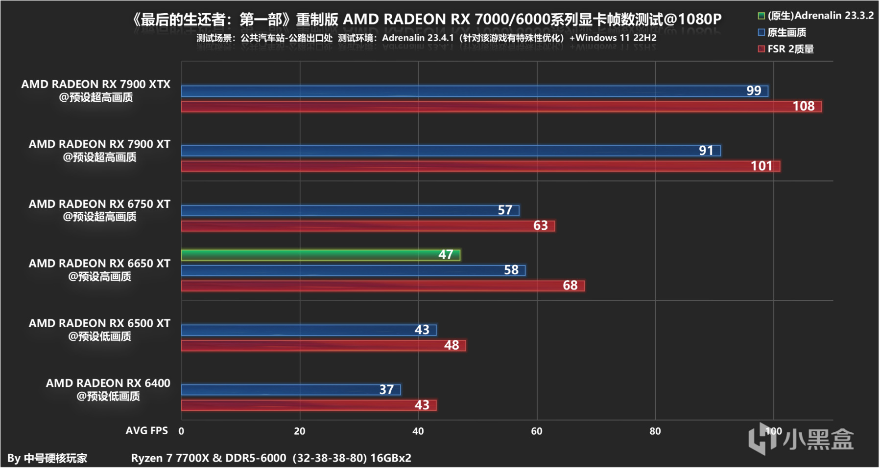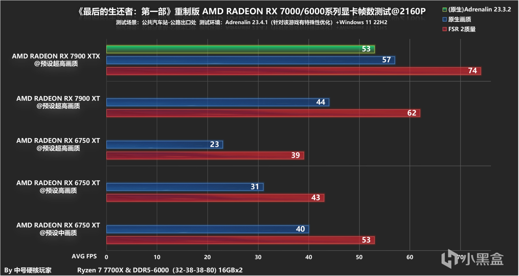 AMD這次可是大大扶持,爲《最後的生還者:第一部》重製版先後推出兩個版本顯卡驅動進行優化,一個是遊戲發售前就更新的Adrenalin Edition 23.3.2 WHQL,另一個則是四月份第一個版本Adrenalin Edition 23.4.1 WHQL,後者有特別標註“Game optimizations for The Last of Us™ Part 1”,強烈建議大家安裝最新的,後面的對比測試你就會明白原因。操作系統是Windows 11 22H2最新版本,搭配兩根DDR5 6000C32 16GBX2組成雙通道內存,並在BIOS中開啓Resizable BAR技術提升一些顯卡性能。