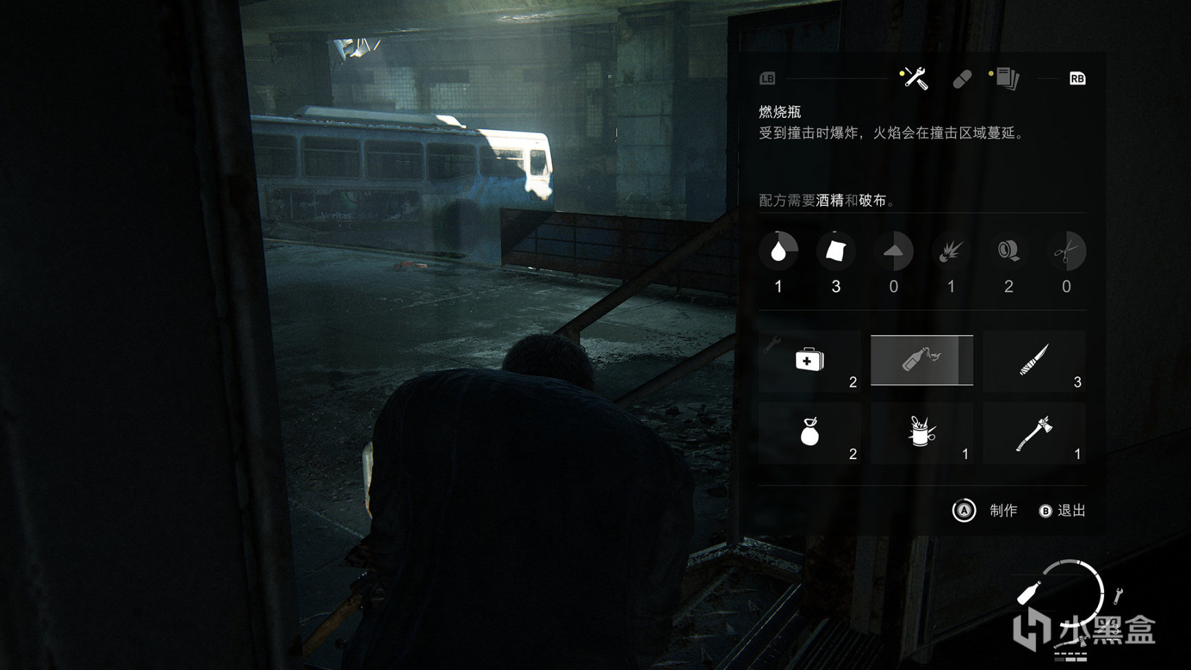 最後是一些解密元素,嚴格來說其實根本算不上解密,充其量算是生存和搜刮,第一部中最日常的操作就是給艾莉找木板當小船,在找木板的期間很多時候都是順途搜刮,而真正和解密沾邊的解鎖保險箱,但是密碼紙條通常也在附近並不難找,沒有深度解密是好事,遊戲本來就是奔着電影化敘事的核心設計。