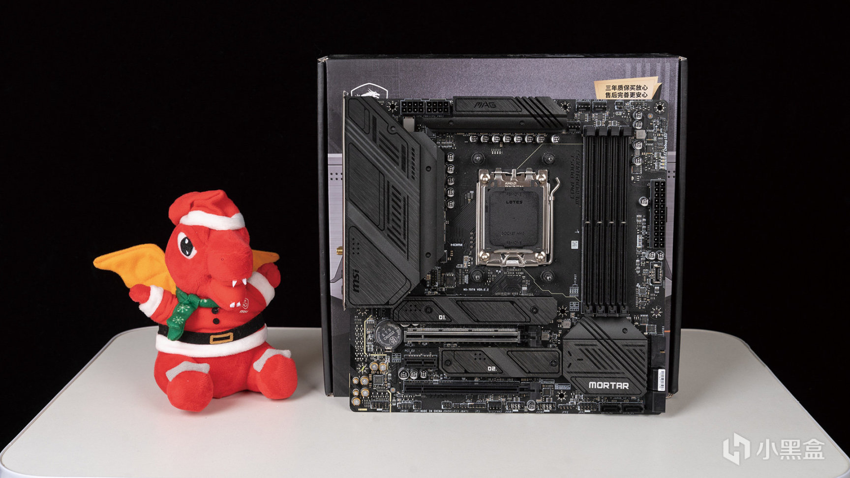 這兩款Zen 4處理器的座駕是微星這款MAG B650M MORTAR WIFI迫擊炮,定位是千元級全能主板,擁有12+2路 & CPU VCORE 80A的強悍供電設計,可搭配全系Ryzen 7000產品均無壓力,主板還擁有兩組帶散熱片的M.2插槽,整體外觀是純黑化設計,視覺效果還不錯。