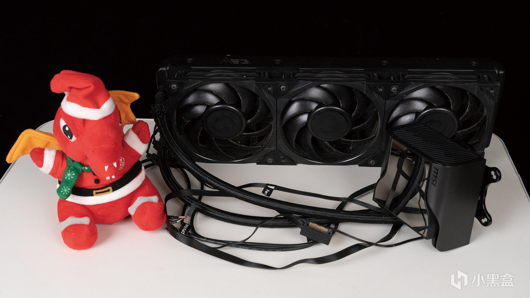 CPU散熱器則是來自微星的MEG CORELIQUID S360,和主板屬於同類的純黑化設計,最大賣點是其擁有2.4英寸IPS顯示屏,可監控硬件各種運行情況,而它的水泵方案採用的Asetek第七代技術,性能上壓制高端CPU很輕鬆。