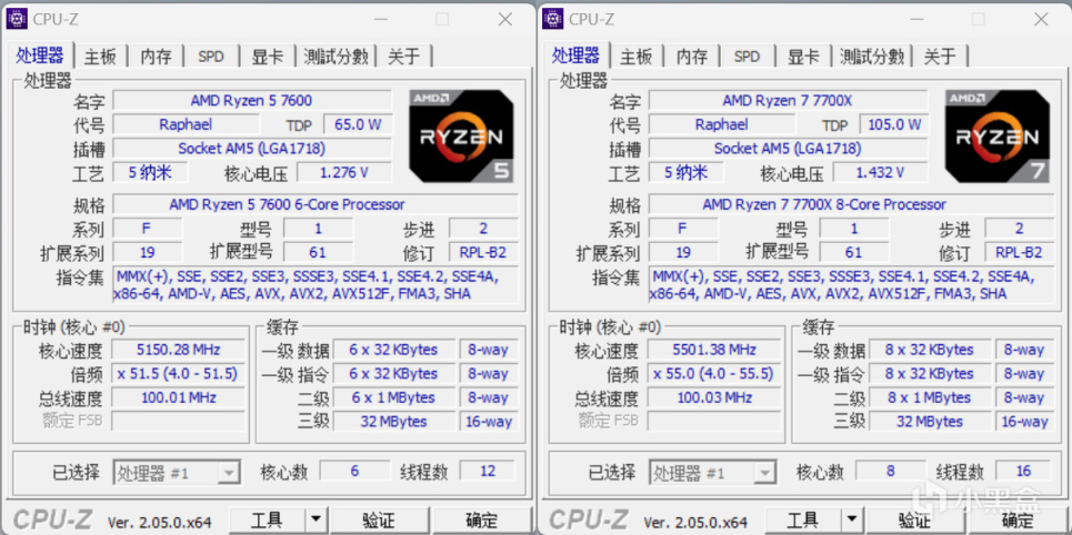 用來對比測試的另一款CPU是Ryzen 5 7600智酷版,最高睿頻爲5.3GHz,稍微比7600X低一些,封裝功耗也要更低,通過簡單超頻的方式也可以達到7600X的性能水平,是主流用戶更好更多的選擇。