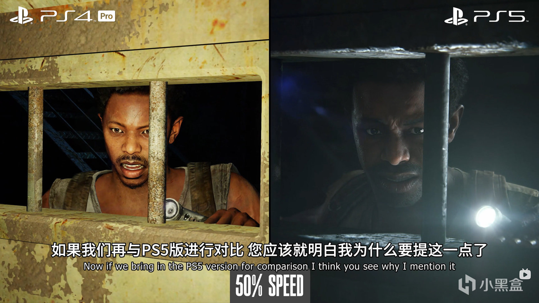 視頻截圖來自數毛社Digital Foundry,PS4 PRO高清版和PS5重製版(4K30保真模式)畫面對比