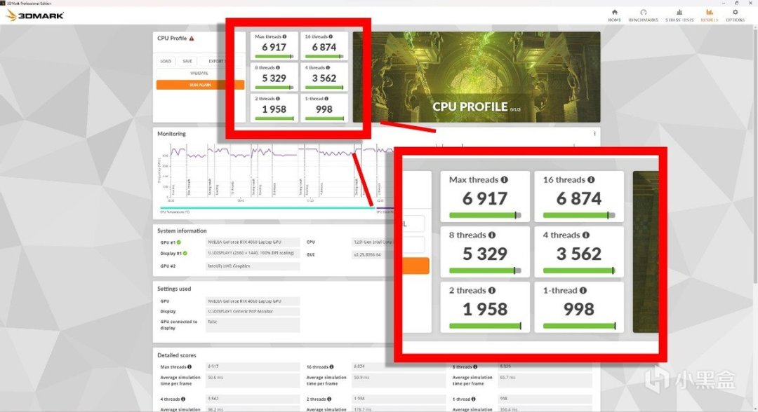 同樣在注重遊戲性能的3DMark CPU Profile中,Core i7-12650H表現依然強力。