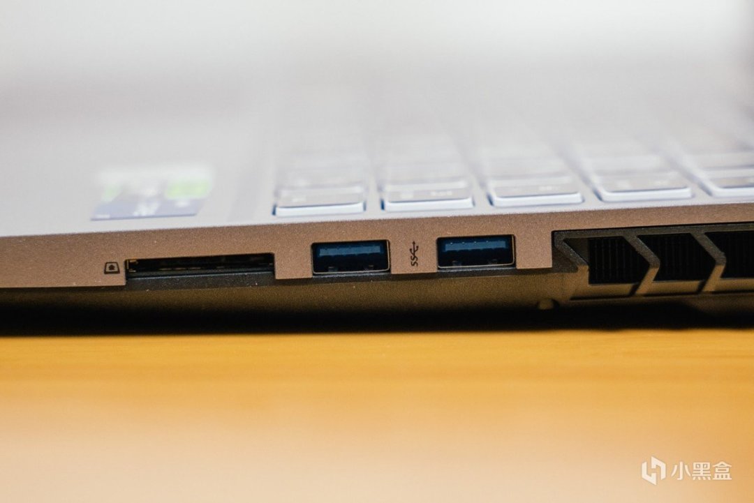 在擴展方面,機械革命極光Pro的擴展性能也可圈可點,比如用上了全尺寸的SD讀卡器,還提供自帶蓋板的RJ45網絡接口,HDMI 2.1、miniDP、USB-C 3.2 Gen2,以及2個USB 3.1 Gen2和1個USB 2.0,還包括1個二合一音頻接口和1個麥克風接口,同時筆記本還支持Wi-Fi 6無線網絡連接。唯獨可惜沒有Thunderbolt 4接口,可以理解爲機械革命極光Pro在多數玩家可能用不到的功能上做了減法,以達成節省成本的效果。