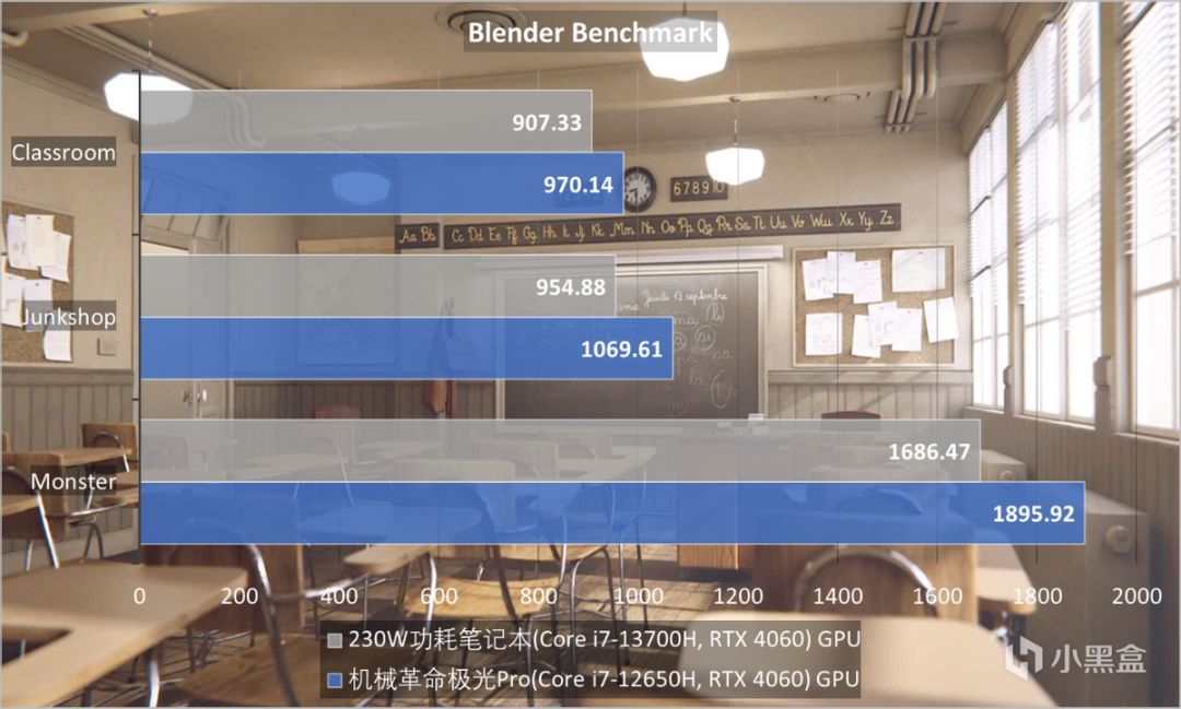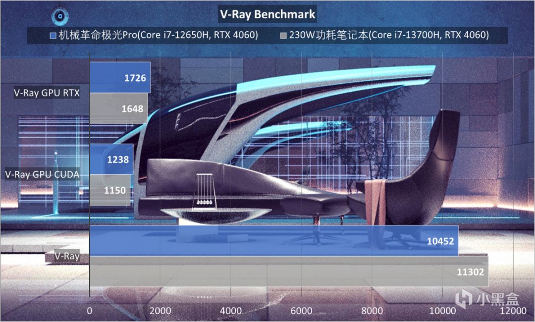 渲染輸出環節,這裏分別選用了V-Ray Benchmark和Blender Benchmark作爲測試,主要考驗筆記本的渲染性能,以及CPU輸出、GPU CUDA和GPU光線追蹤性能。在V-Ray Benchmark場景中,可以看到GPU表現突出。