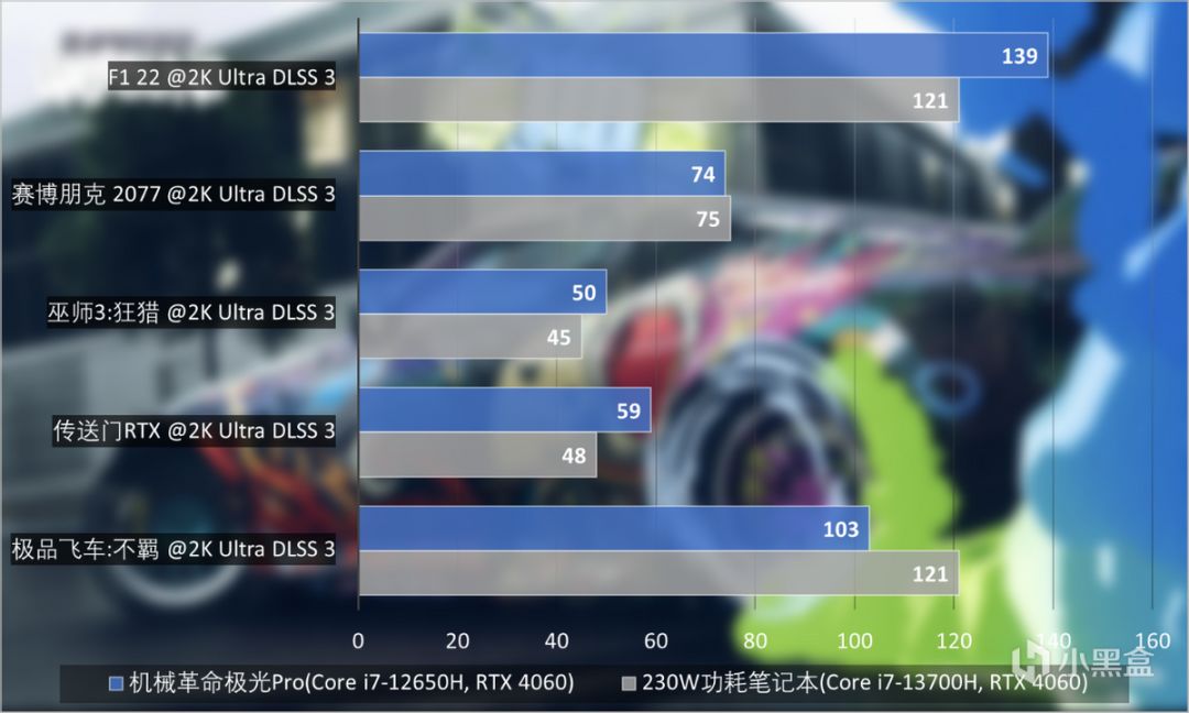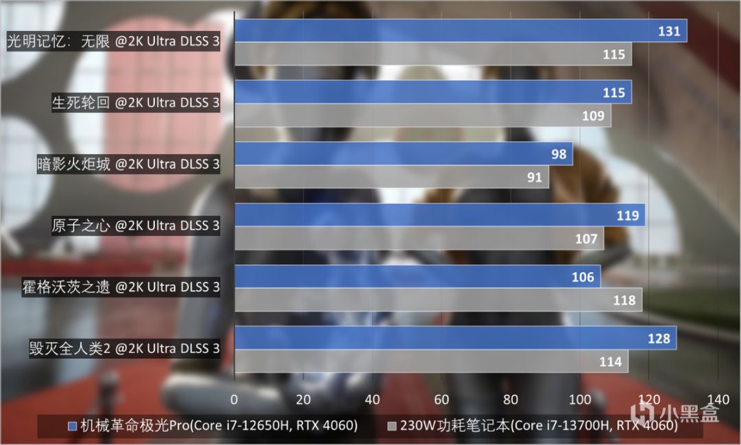 讓人較爲意外的是,機械革命極光Pro在處理器上喫虧沒有在實際的遊戲中拉開太多差距,相反在某些場景下與230W功耗同級別的遊戲本戰得有來有回。