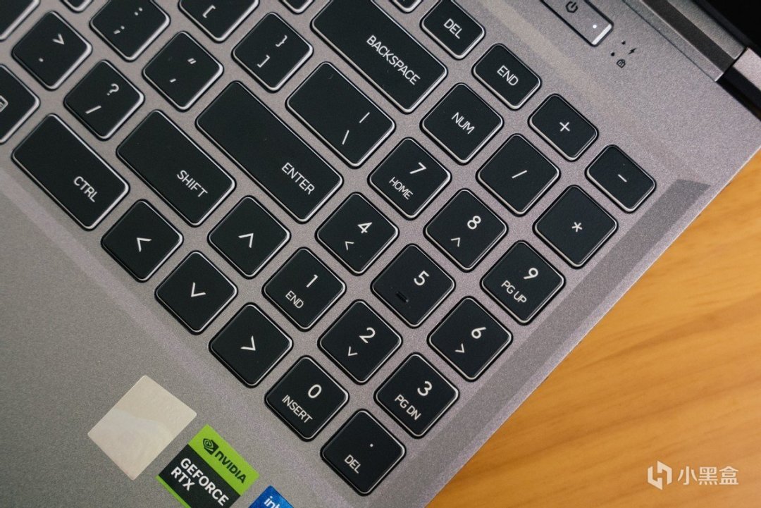 順帶一提,機械革命極光Pro的小鍵盤設計頗有意思,原本的加減乘粗按鍵被移動到了右上角,取消了最右側的小鍵盤迴車鍵,同時方向鍵與小鍵盤共享空間,以確保方向鍵面積。