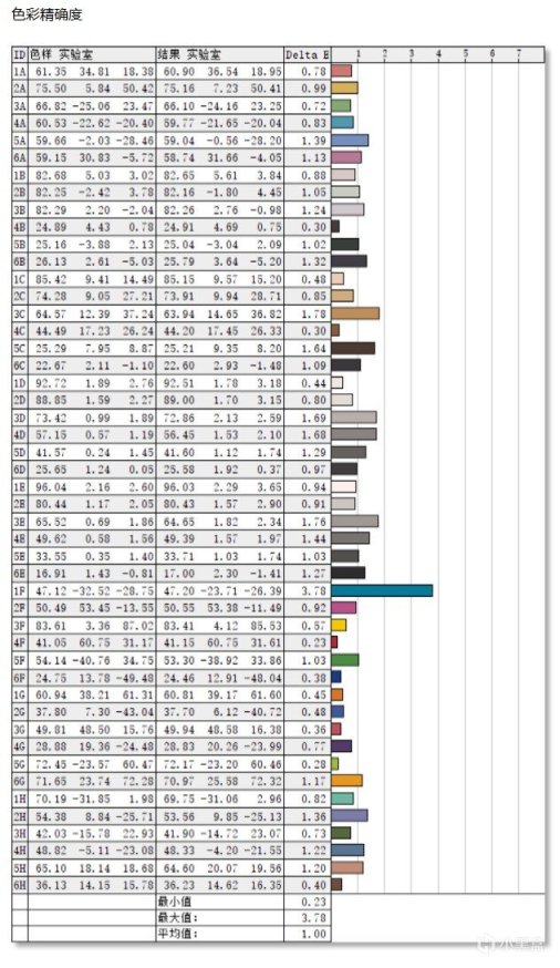 在屏幕測試中,可以看到屏幕的最高對比度爲1360:1,色彩精度△E平均值爲1,表現水準不錯。