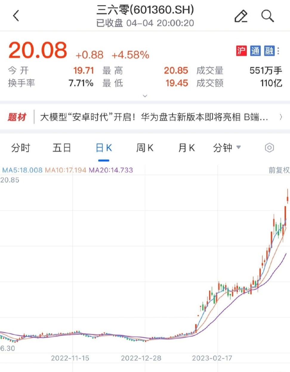 之後大家可能還沒get到他們的好處,但是AI確實讓大家實打實的感受到了科技的進步。國內深耕AI領域的公司不多,360和百度是其中的佼佼者。自然360的股價也在一路飆升。