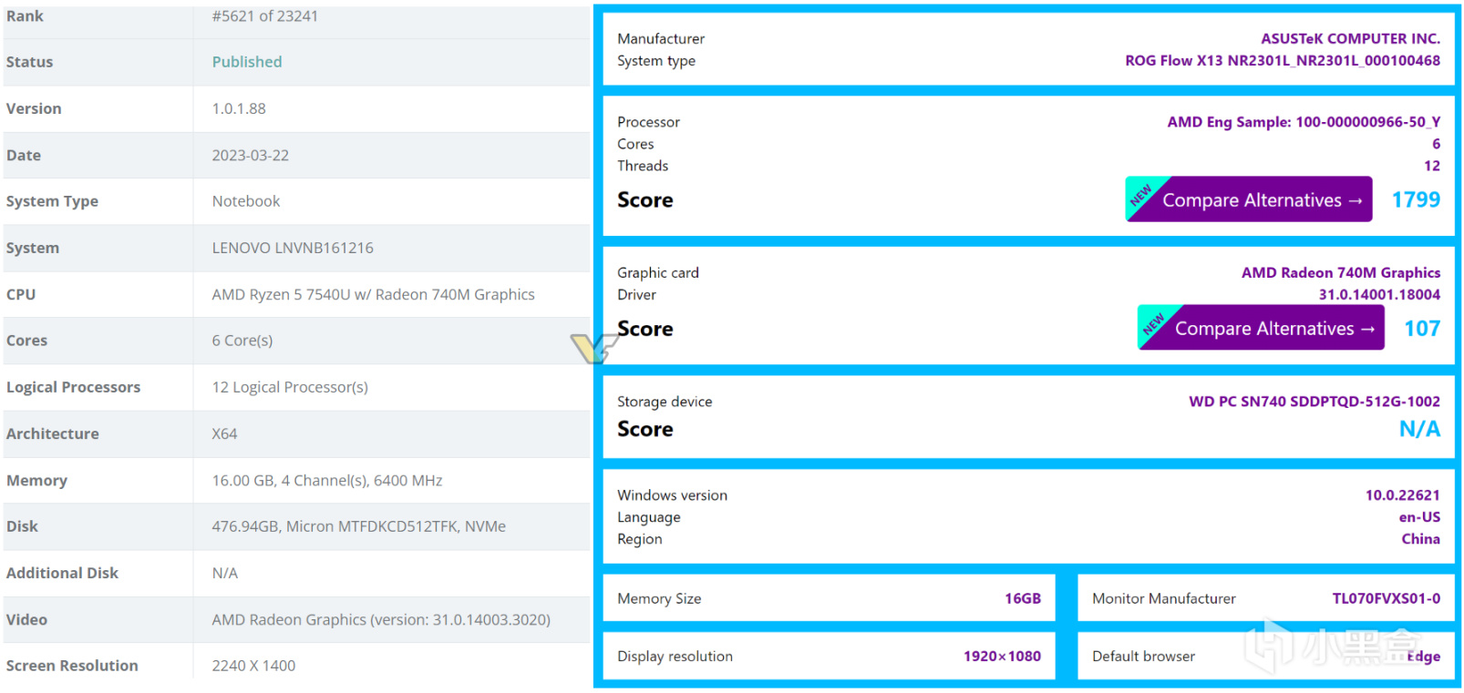 CPU方面,AMD銳龍7540U泄露,帶有740M核顯,RDNA3架構