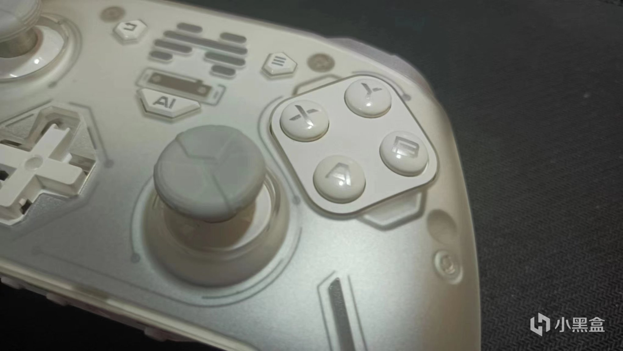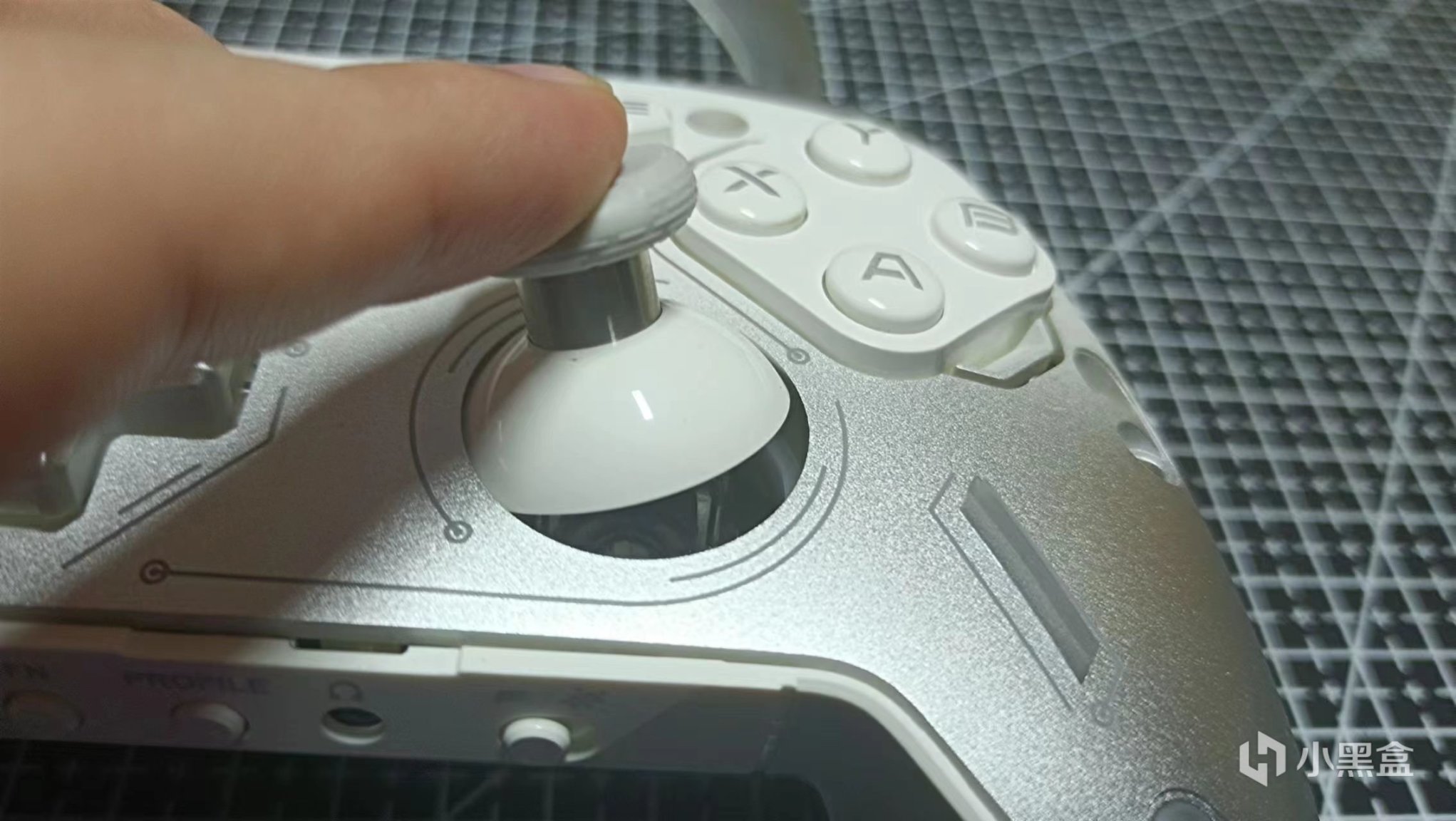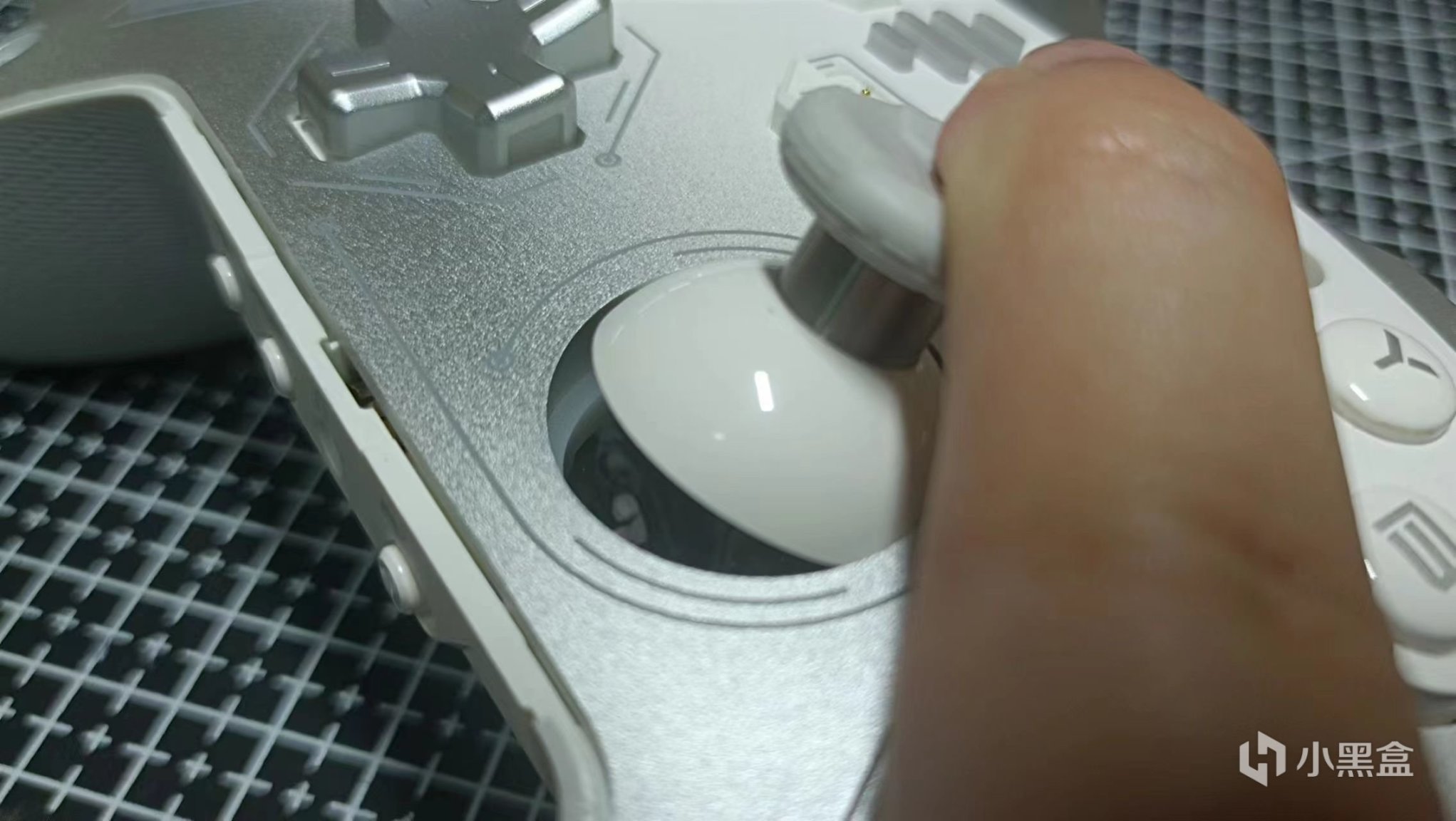 这次北通宙斯2的宣传没怎么提到遥杆,但是我还是想说这次的遥杆保持了一贯的高水准。北通的遥杆一向我都是挺放心的,无论是顺滑还是算法都是市面一流,唯一缺点可能就是品控不稳有些产品容易飘移。而这次的宙斯2遥杆我的感觉是真的非常丝滑,有点像德芙巧克力哈哈。而如此丝滑的原因是,北通宙斯2的遥杆下面增加了一层类似泡沫环的材质垫,整个摇杆是不接触外壳四边的。一般来讲手柄遥杆旁边会做一个碰圈,但是宙斯2这边是没有直接接触的,所以导致遥杆用起来特别顺滑。