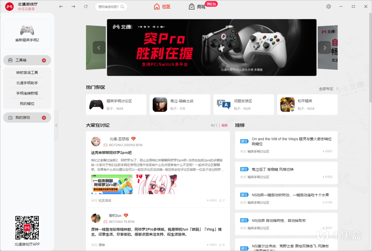 如果一般的手柄我是不怎么看重搭配的软件了,因为已经完全够用了,但是精英手柄我会选择去深度访问其搭配的软件。宙斯2搭配的北通游戏厅更像是一个平台,除了调节手柄参数,里面无论是资讯还是社区什么都有。社区里面的键位分享这些功能还比较实用,可惜就是人太少了,帖子都没几个哈哈。