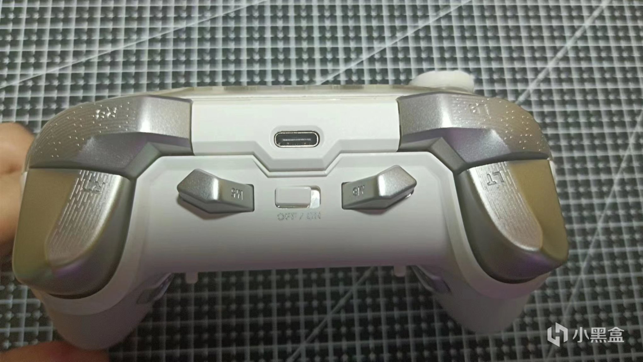到了这次我想吐槽的部分了,就是北通宙斯2的肩键和背键设计,不是说材质硬件不好,相反材质非常棒,但是设计的位置却有点尴尬。单说肩键其实还进步了,宙斯1的肩键有种塑料的质感,宙斯2的肩键就无缝衔接xbox的触感了,清脆且回弹快。