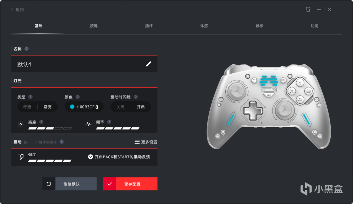 不过北通的震动有一说一真是在国产手柄当中,绝对的是一等一的梯队啊。无论是非对称的手柄的马达震动还是扳机震动,就是特别舒适细腻的感觉,不会单一的虎口发麻的那一种,我个人感觉甚至比微软那个震动还要微妙一些。