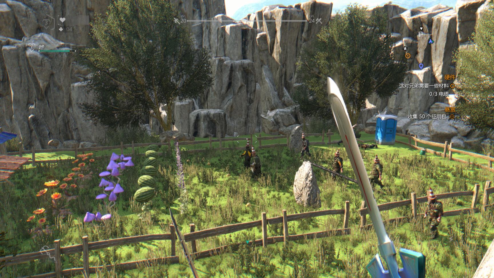 塔樓左上方的工廠裏,有個狼人保護任務。激活任務後,不要管保護對象,進入工廠,打開右側的電閘開關,伴隨着只因音樂,就會出現一羣跳只因舞的喪屍團,哥哥們給你來跳舞啦。