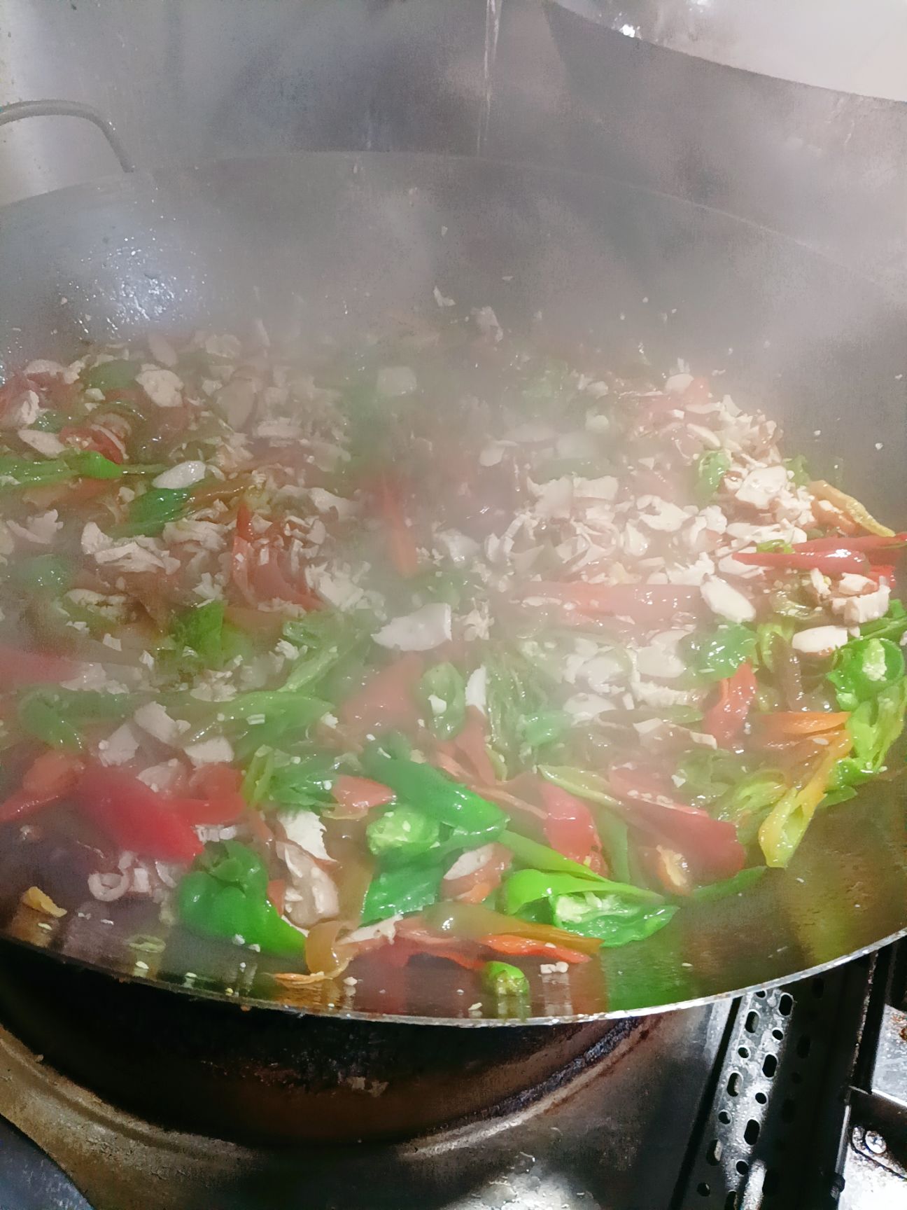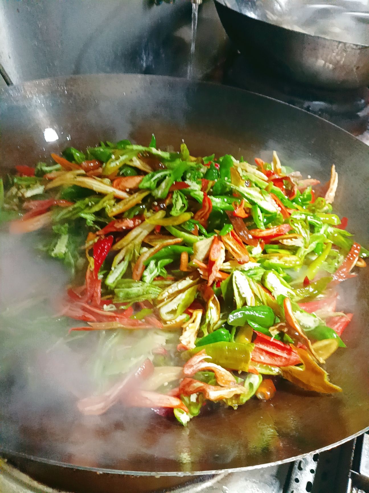 鍋中放油,把辣椒炒制斷生,放一點點鹽