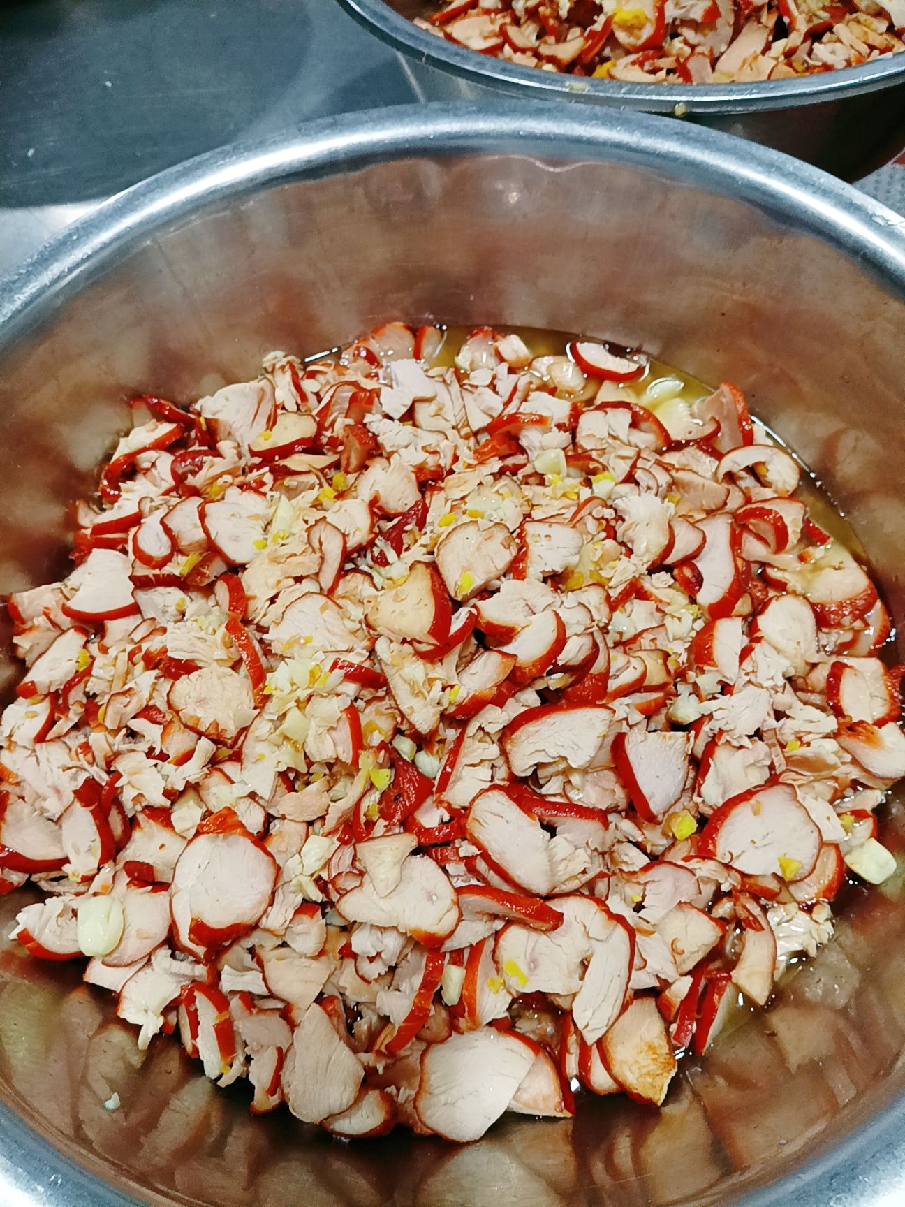 食材:臘雞胸肉,辣椒,老薑,大蒜子,