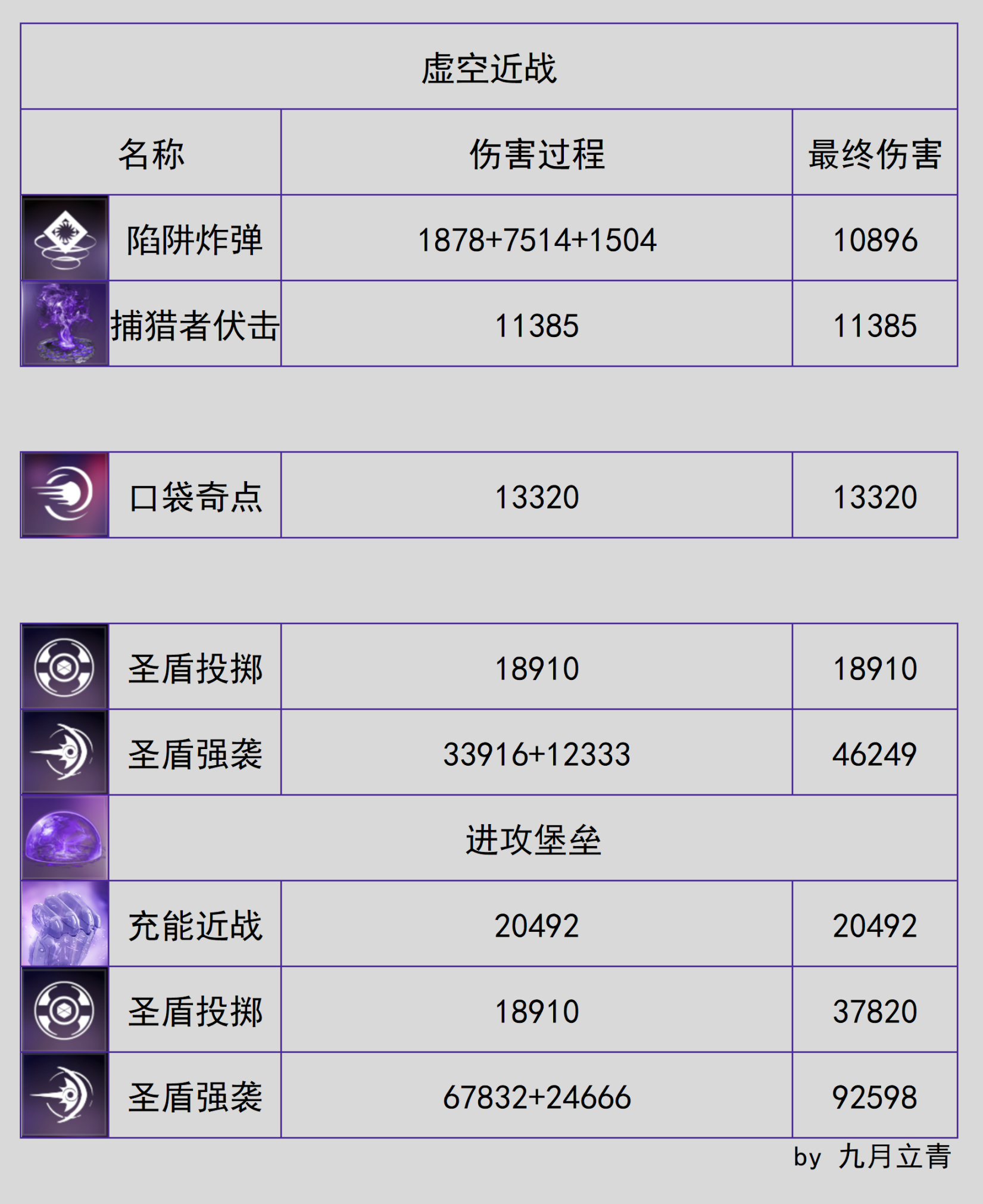 可以看出大家最常使用的渦流手雷傷害不是最高,虛空尖刺和虛空牆壁傷害都高出渦流手雷一頭,但是渦流手雷的實用性是最高的,測試手雷過程中經過多次測試,只爲將所有手雷傷害喫滿,而實戰中虛空牆壁和虛空尖刺很難打出最大傷害,所以渦流手雷還是最好用的。