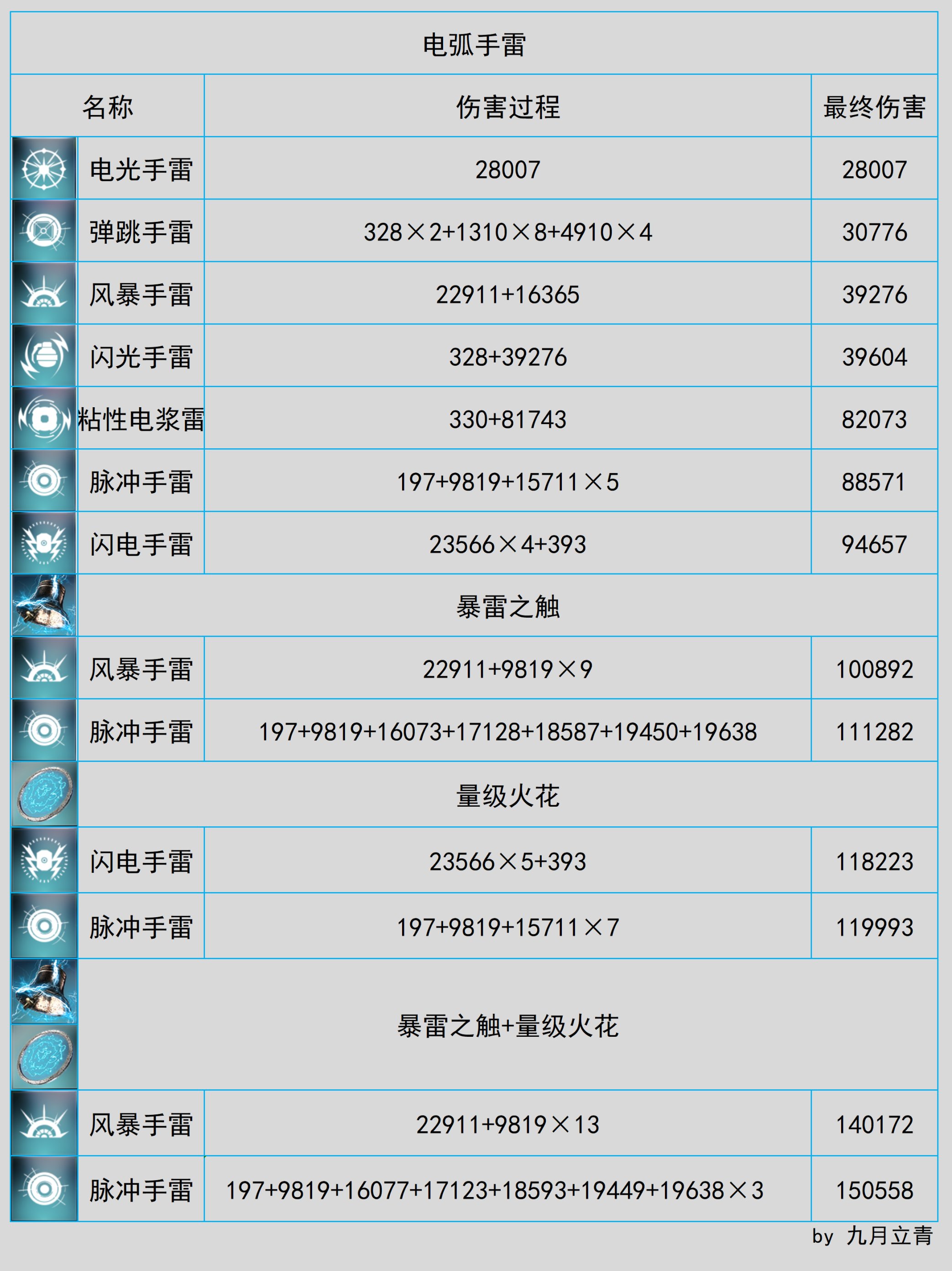 風暴手雷的削弱迎來了脈衝手雷的上位,傷害全方位超越風暴手雷,這裏要注意一點,單雷暴之觸脈衝手雷傷害比不上單量級火花脈衝手雷,脈衝雷也適合打不移動的單位,如果目標遠離了手雷中心,傷害將大幅衰減,如果雷暴之觸脈衝手雷多段傷害全部命中目標的話,手雷能量能回到50%左右,所以脈衝手雷已成爲最強電弧手雷。