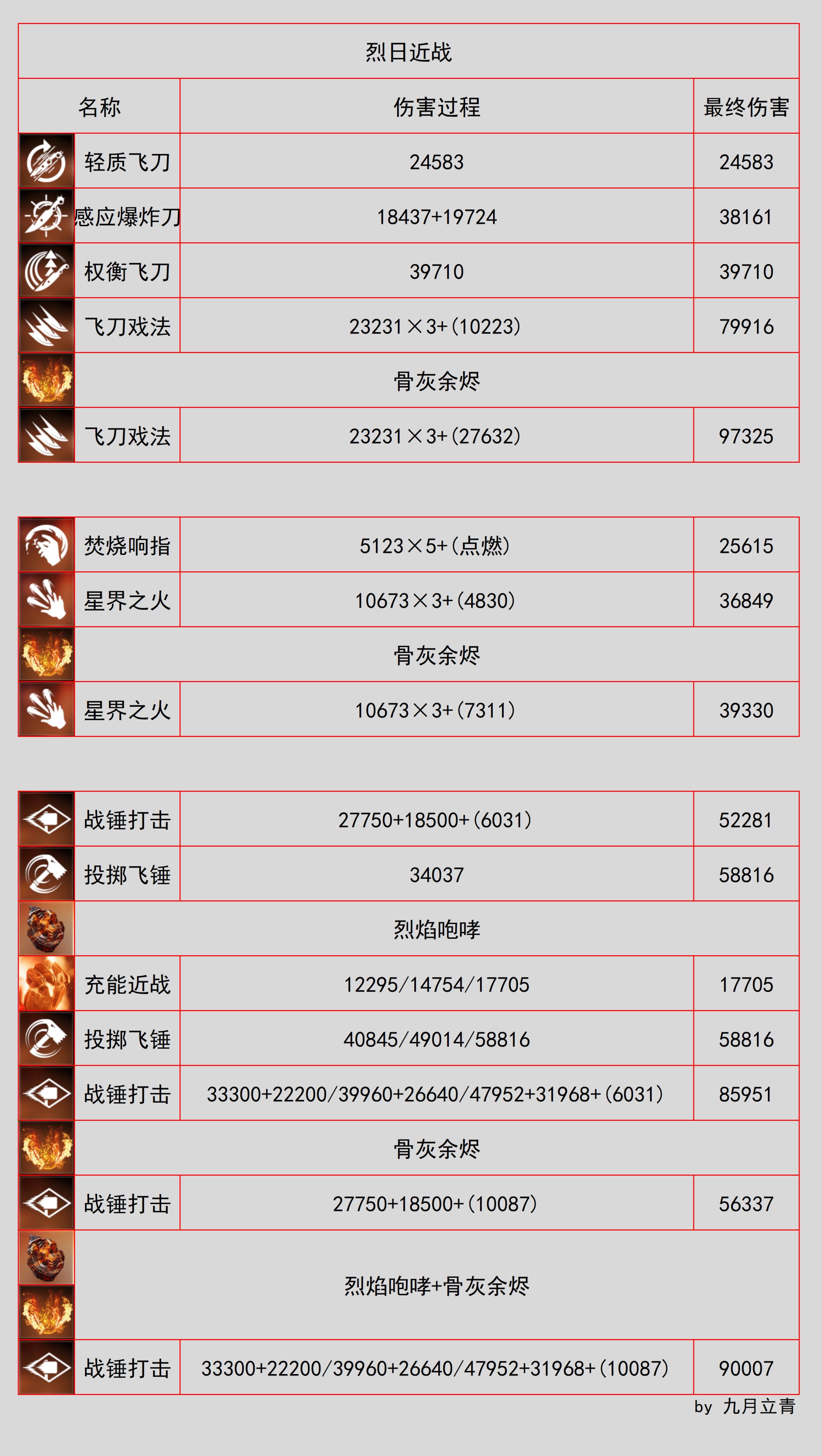 獵人的飛刀在測試過程中全部爲精準命中傷害,飛刀戲法全部命中傷害很高,骨灰餘燼也能增加相當高的灼燒傷害。
