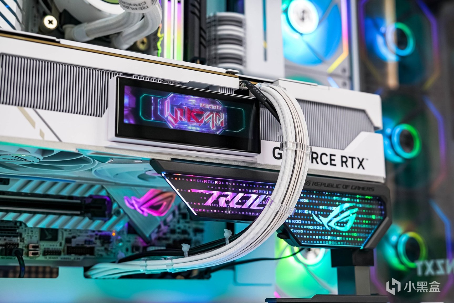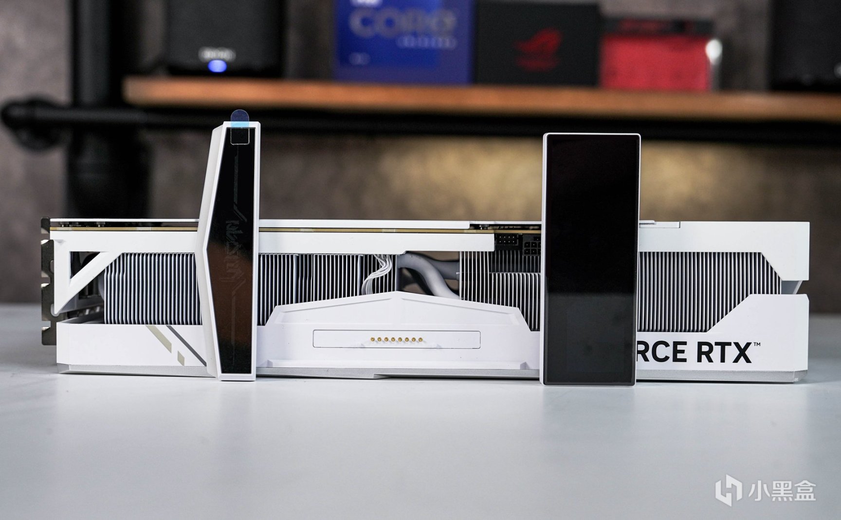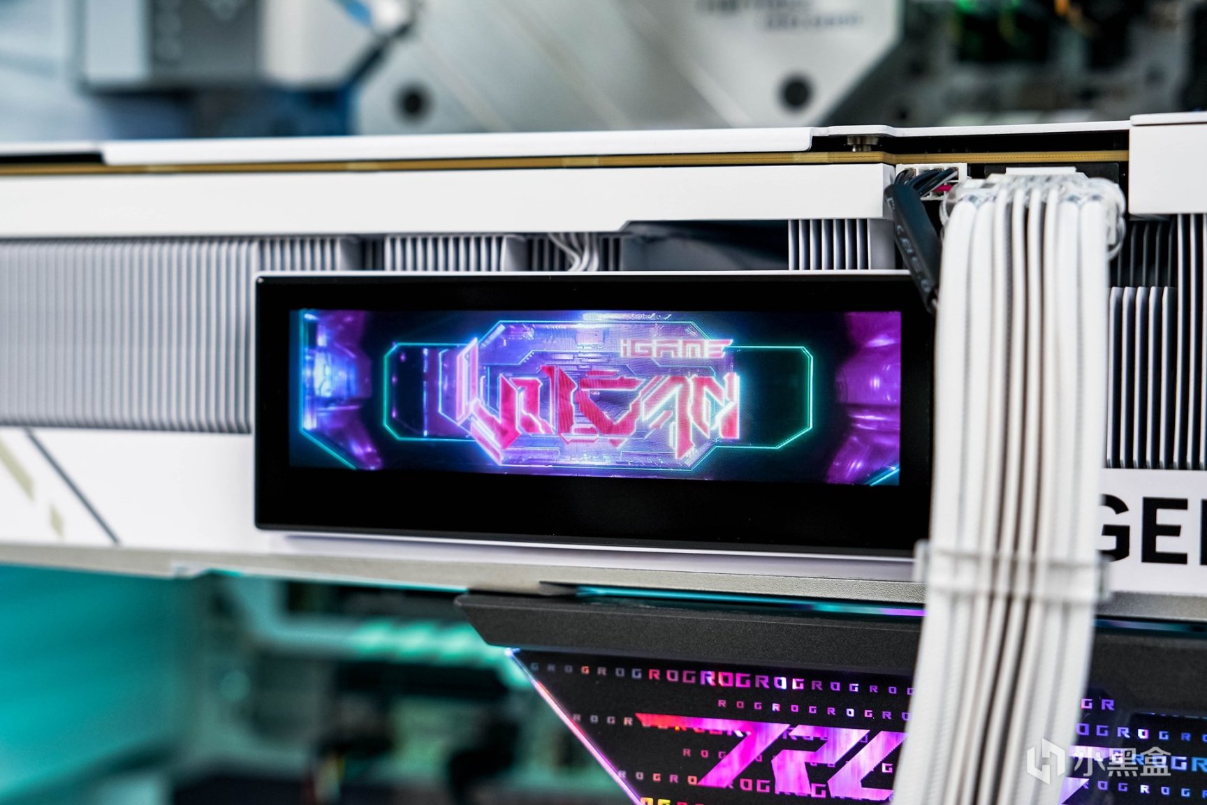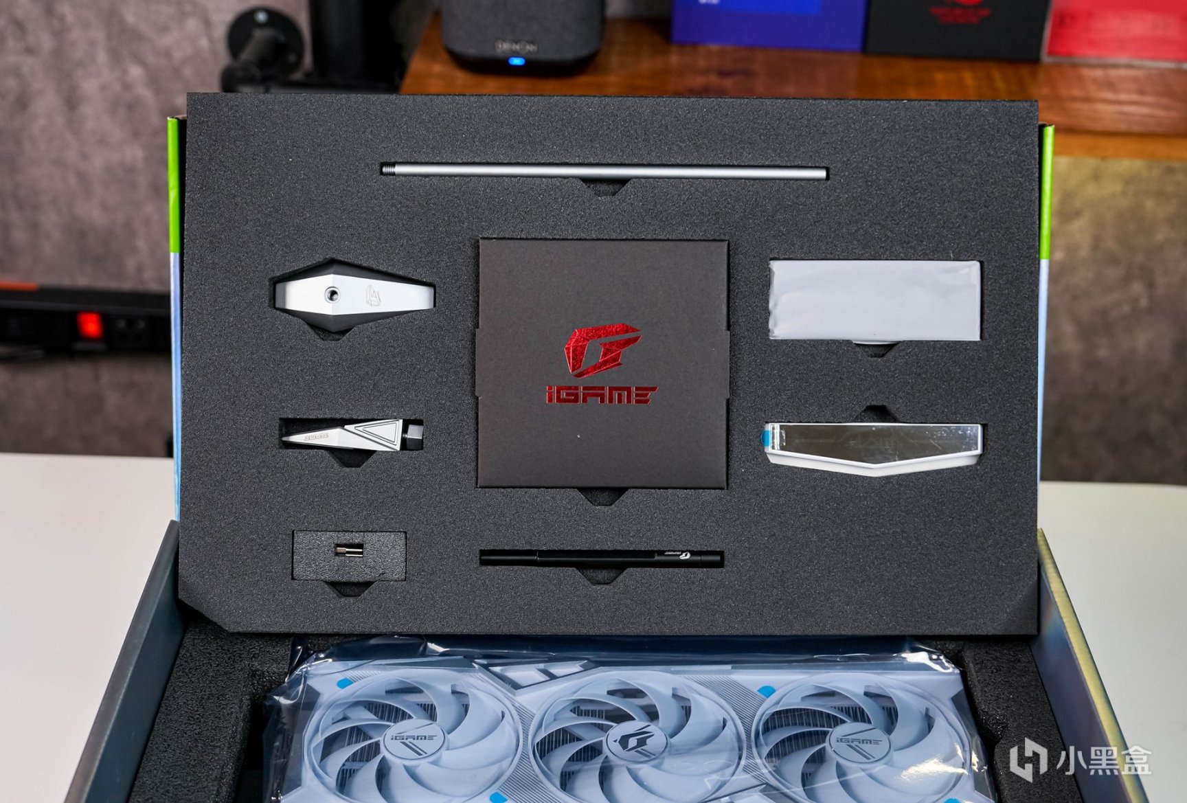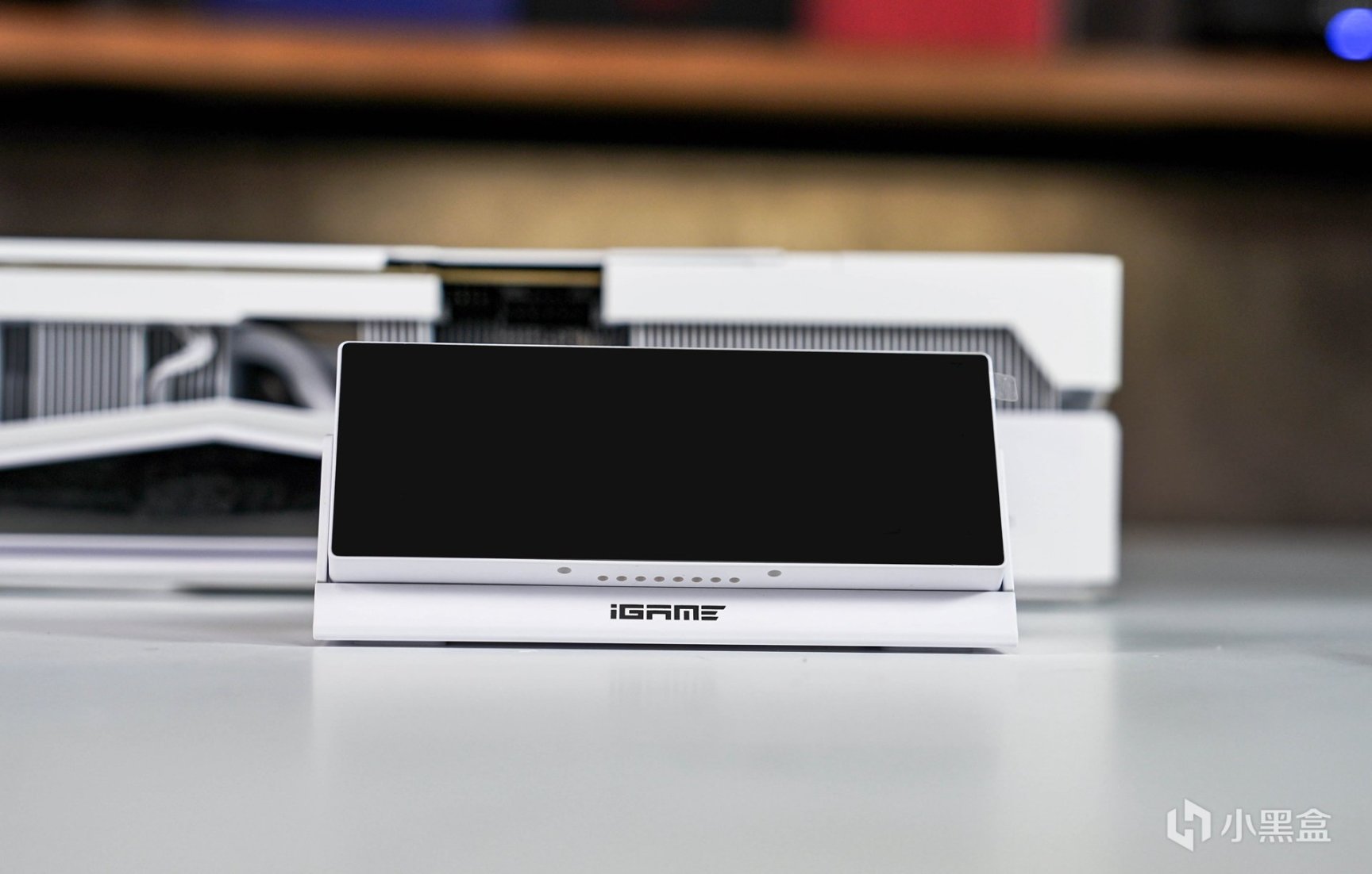 显卡的配件还是蛮有特色的:拥有800*216分辨率的一块液晶屏“智屏”和RGB的iGame Vulcan三角灯板 ,采用时下最流行的无线模块化针型拼接触点设计。