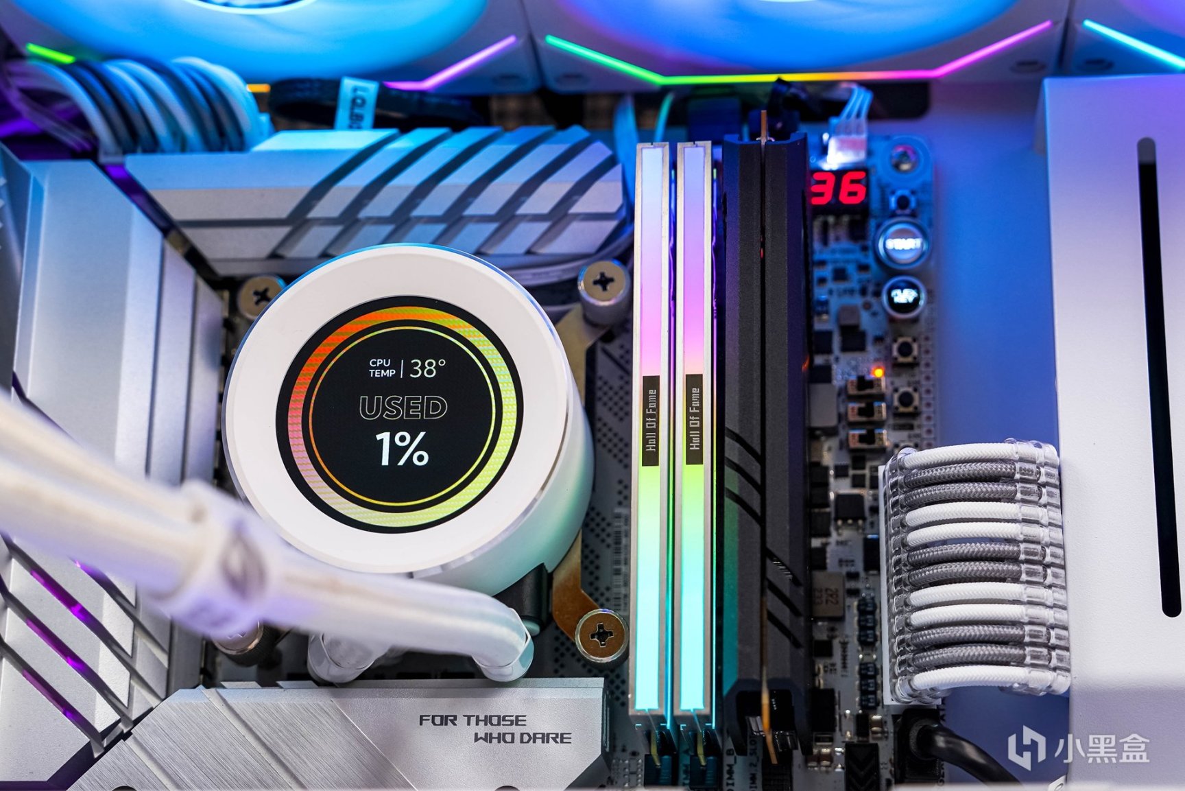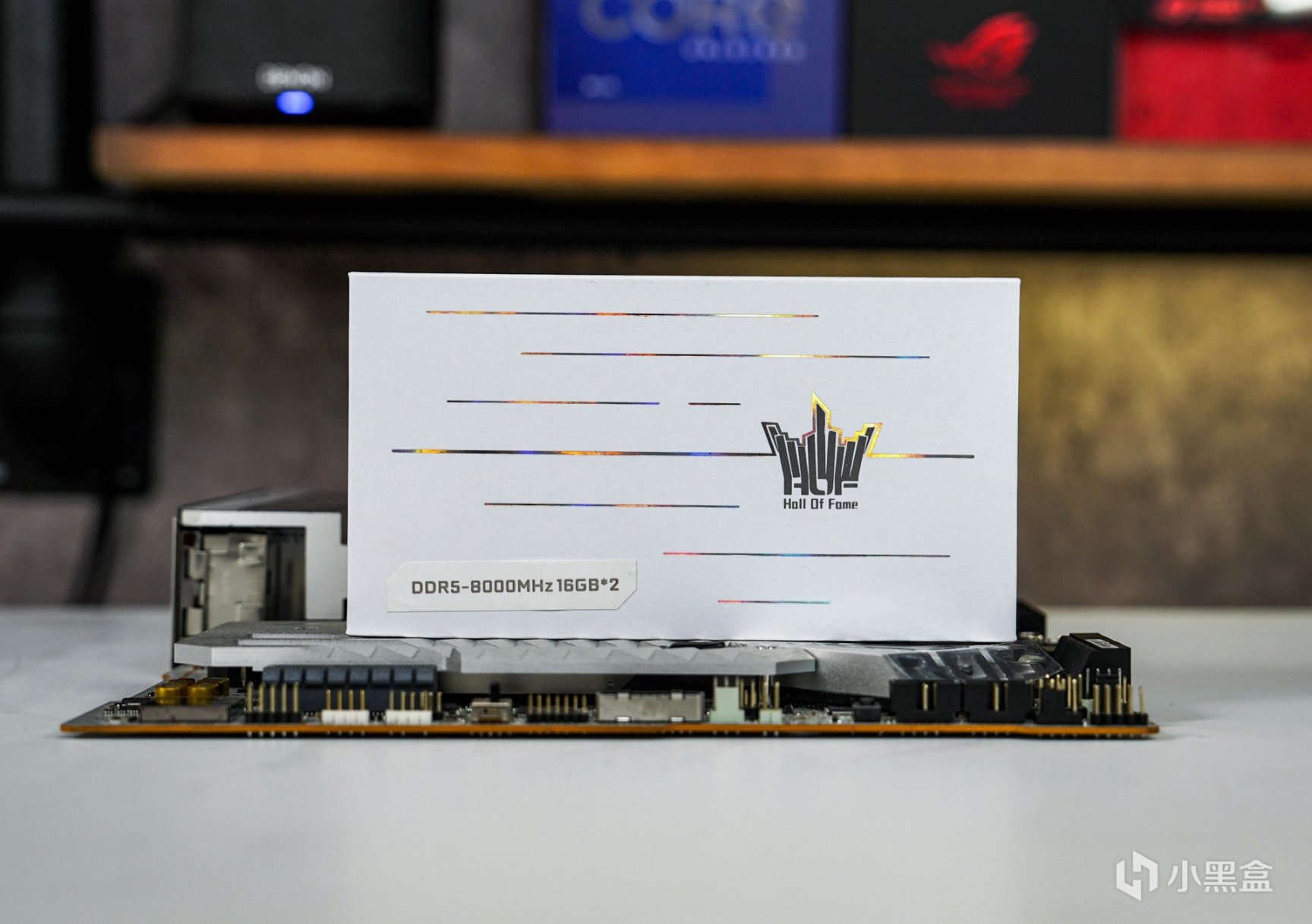 CPU、主板、显卡基本都是采用发烧级别的配置,那么存储类的硬件那肯定也不会太低的,这次采用的内存是---影驰名人堂HOF Pro系列的DDR5 8000频率16*2 32G顶配D5内存。