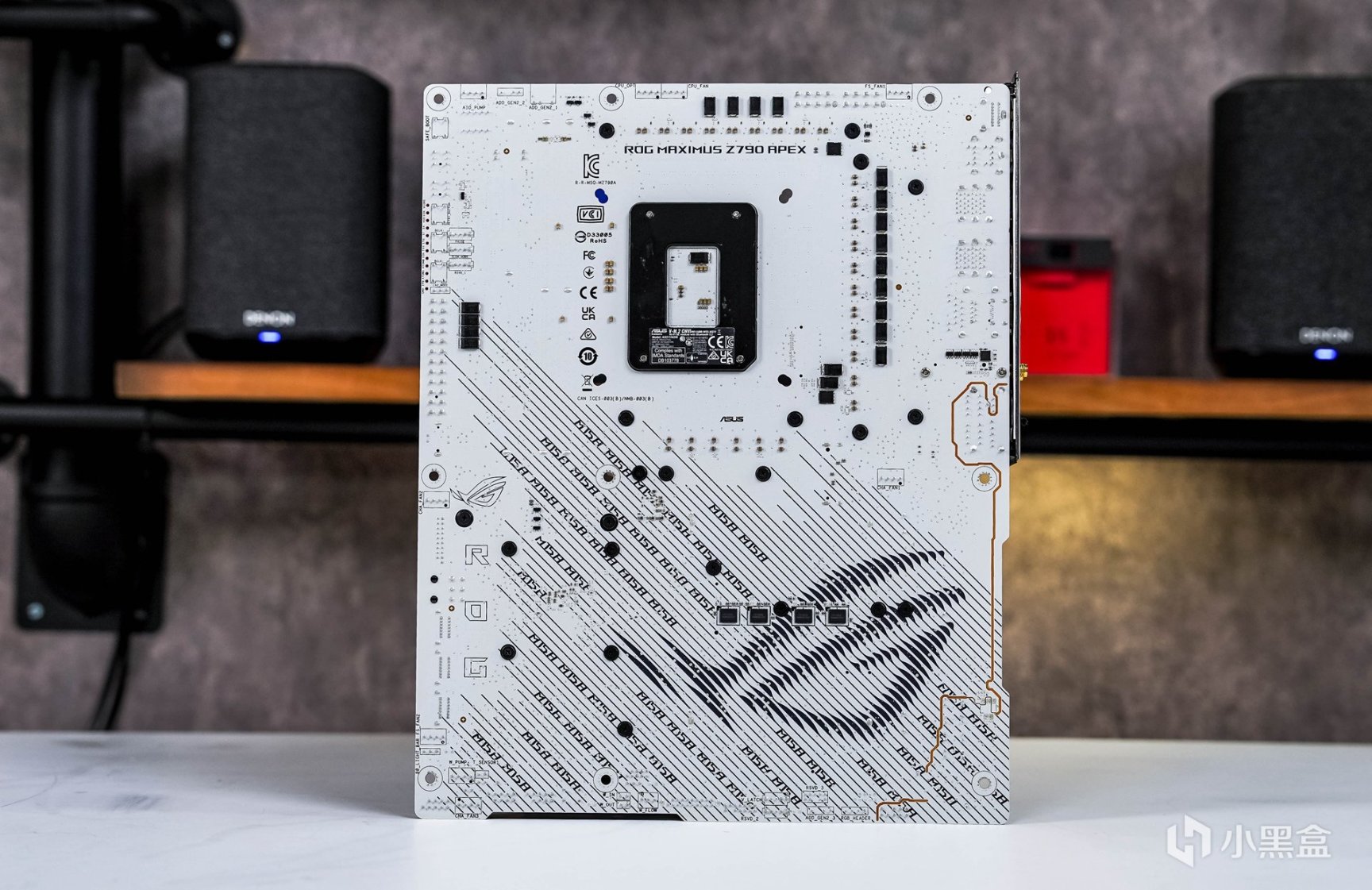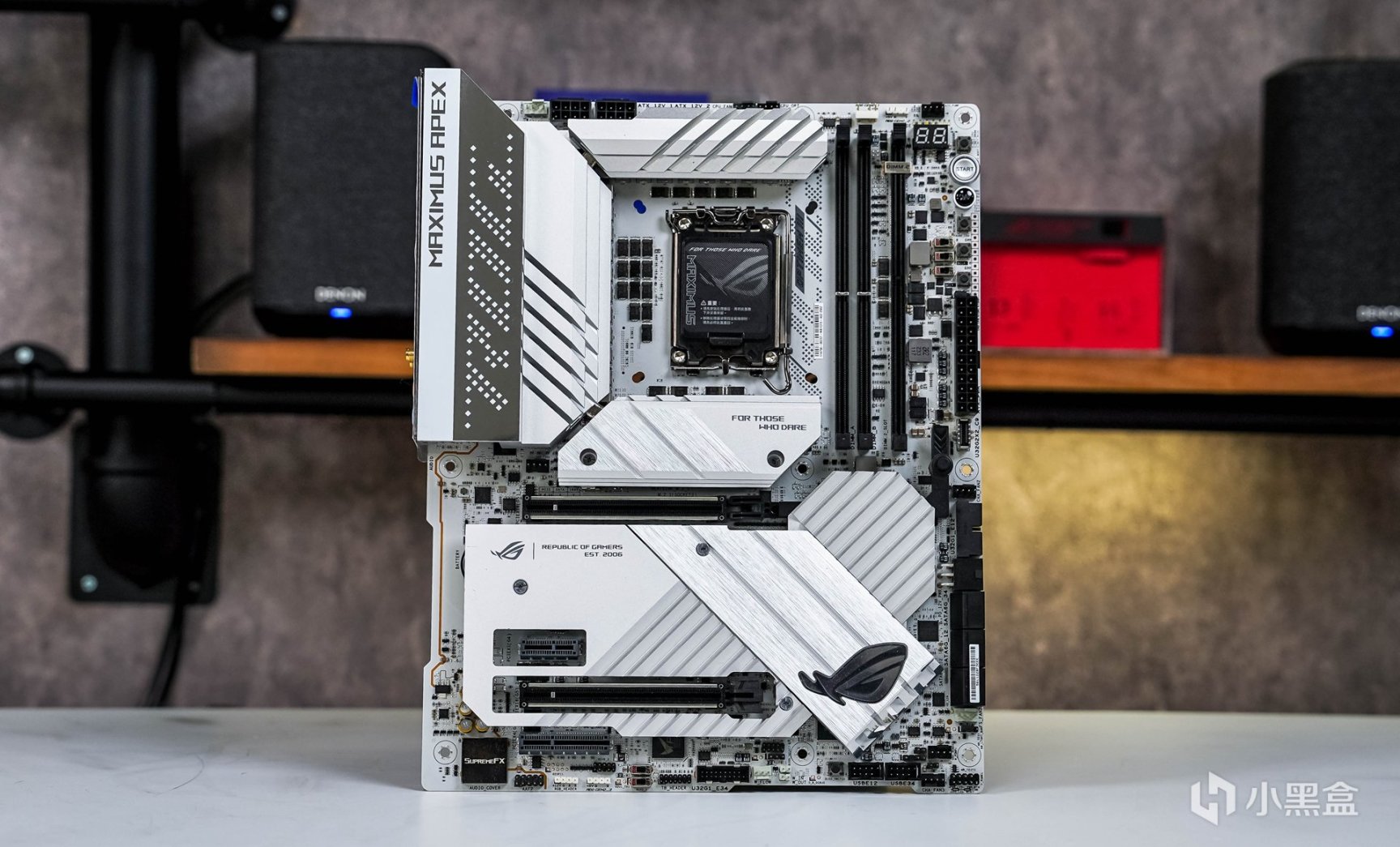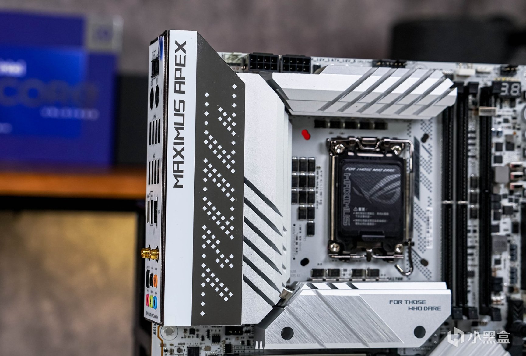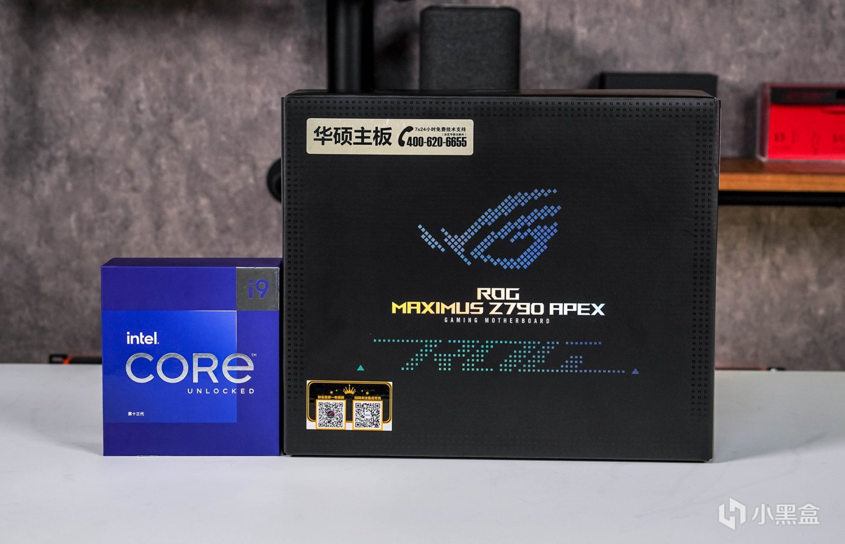 主板搭配:ASUS ROG MAXIMUS Z790 APEX主板,包装与以往纯血 ROG 红黑经典外包装配色不同,ROG MAXIMUS Z790 APEX 采用了全黑风格设计,表面仅使用数码点阵绘制出 ROG 的 Logo 以及型号标识。而这张主板的官方渠道页面定位的标配处理器也是I7/I9起步,APEX系主板一直定位--主打超频向的纯血ROG系性能主板让这个系列的主板站稳了ROG系高端主板的次旗舰地位。